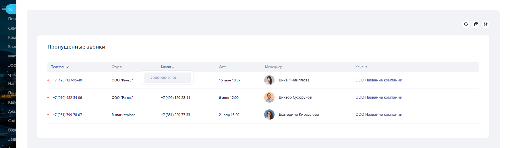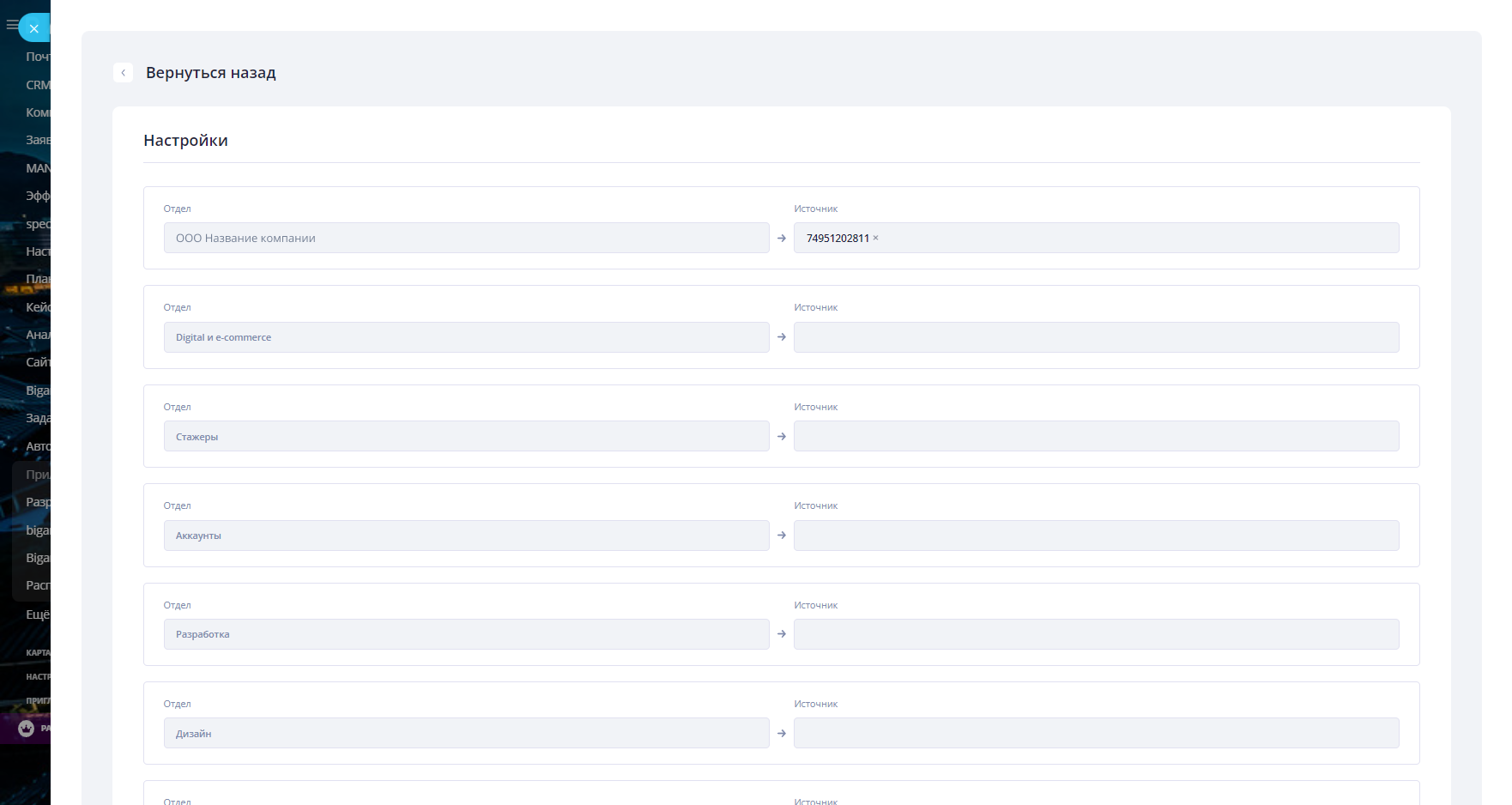 Возможность добавлять несколько номеров телефонов (источников) к одному отделу для последующей связки и фильтрации по ним пропущенных звонков