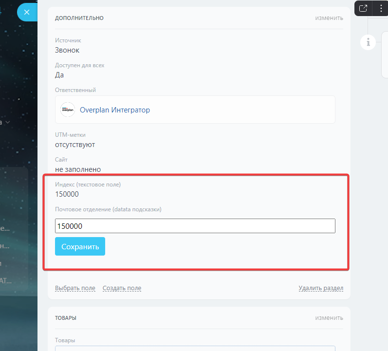 Интеграция с DADATA: Поля с подсказками в карточках CRM
