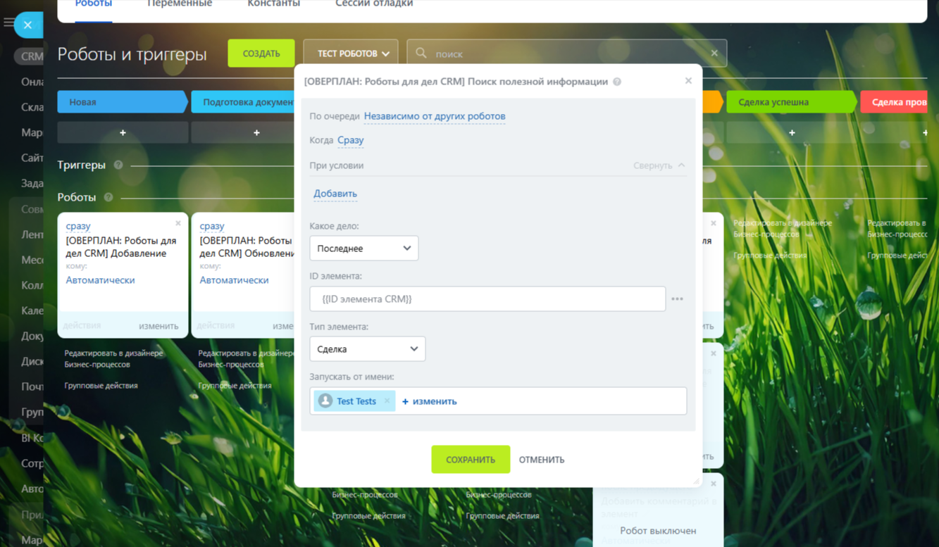 Коллекция роботов / активити бизнес-процессов, которые позволяют работать с делами CRM