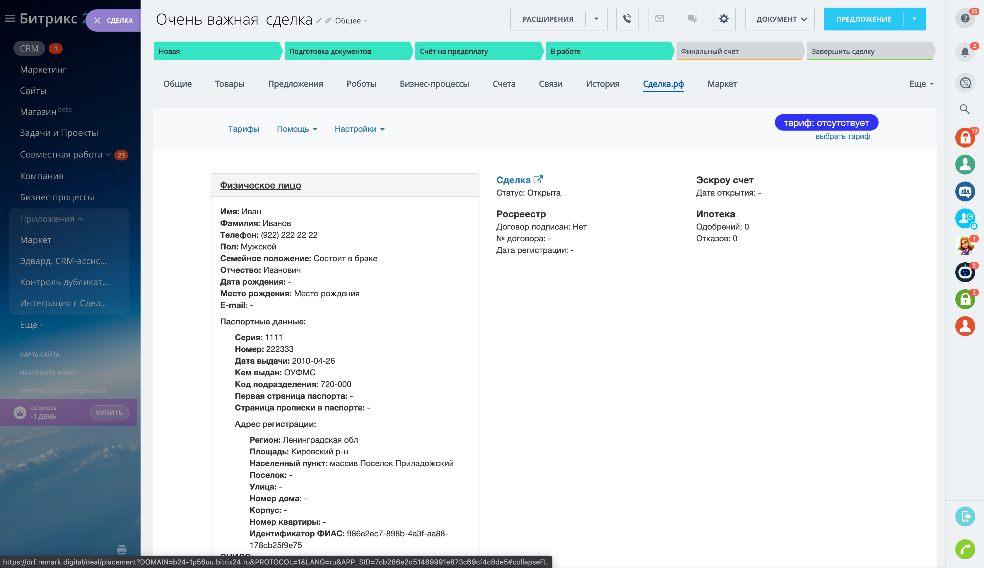 Удобный обмен информацией о клиентах между Битрикс24 и сервисом Сделка.рф