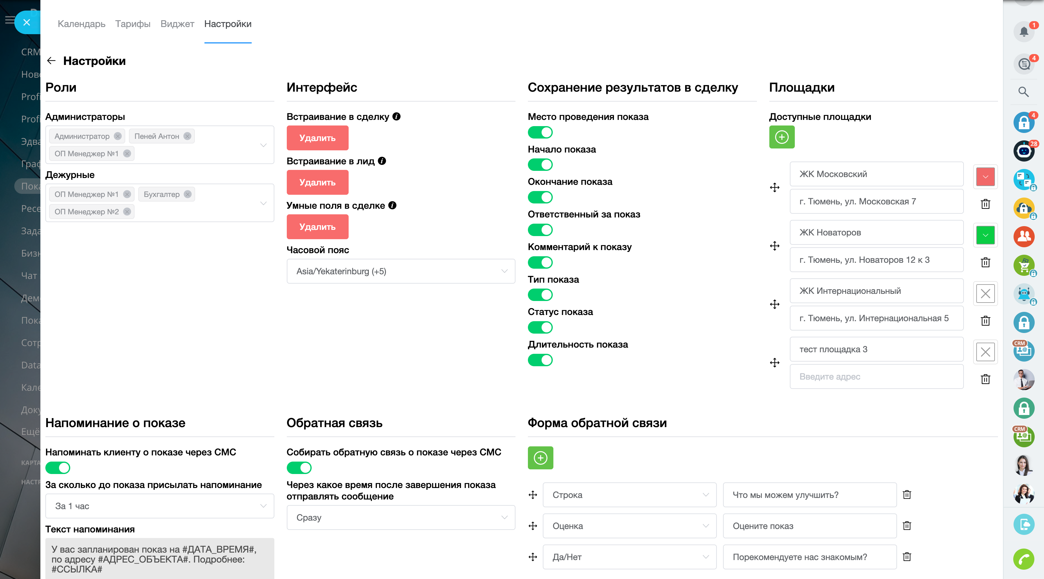 - Настройте автоматическое СМС-напоминание клиенту о назначенном показе.