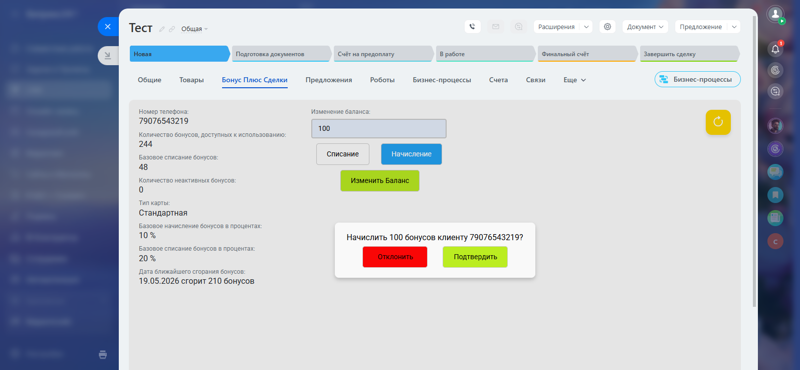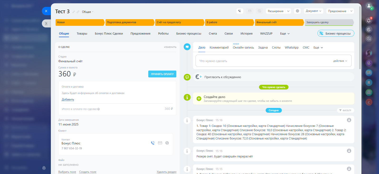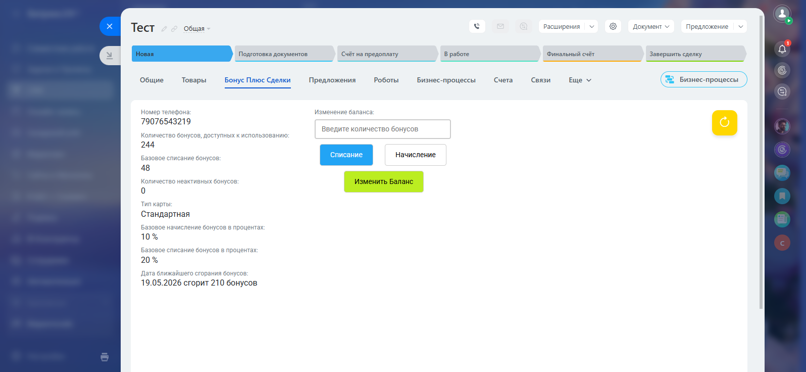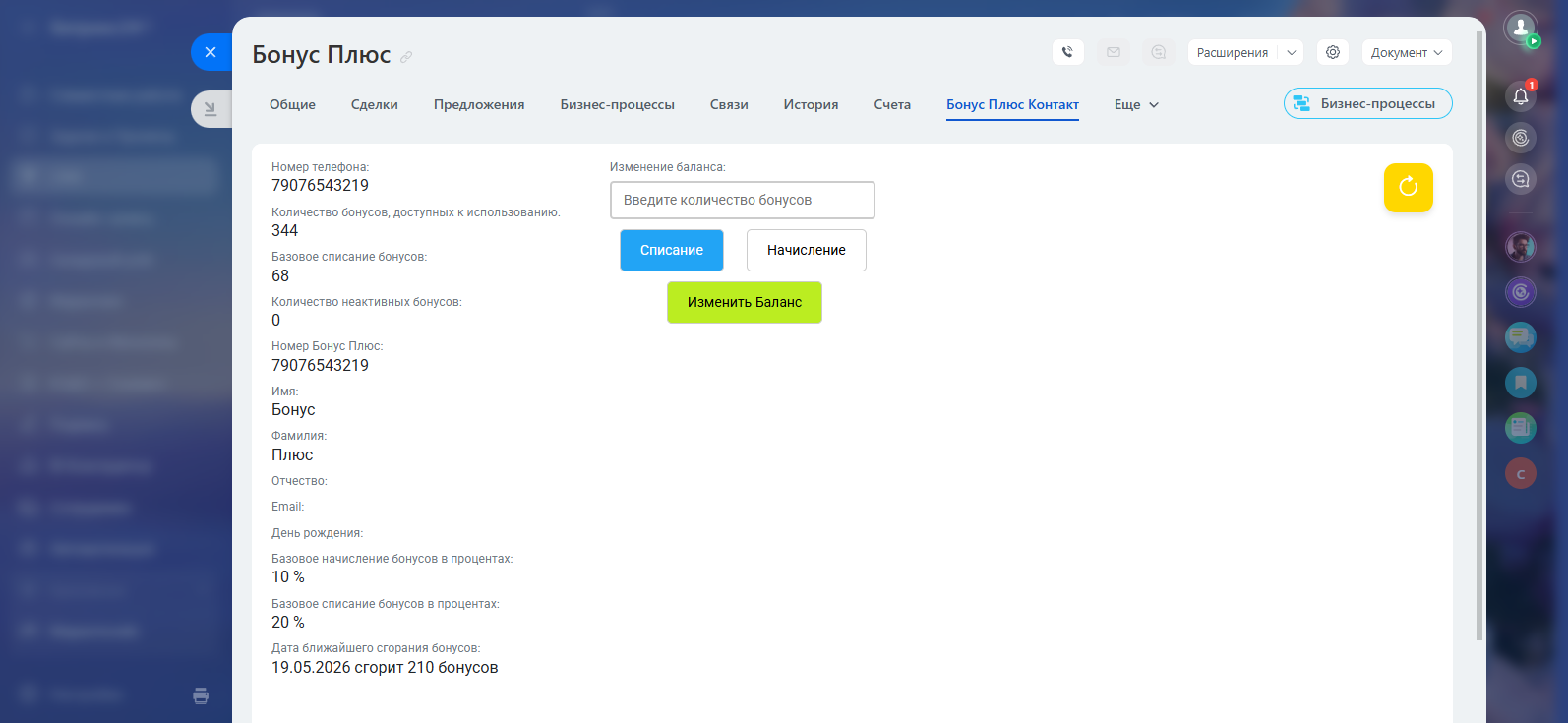 Функционал в Битрикс24 после интеграции с БонусПлюс