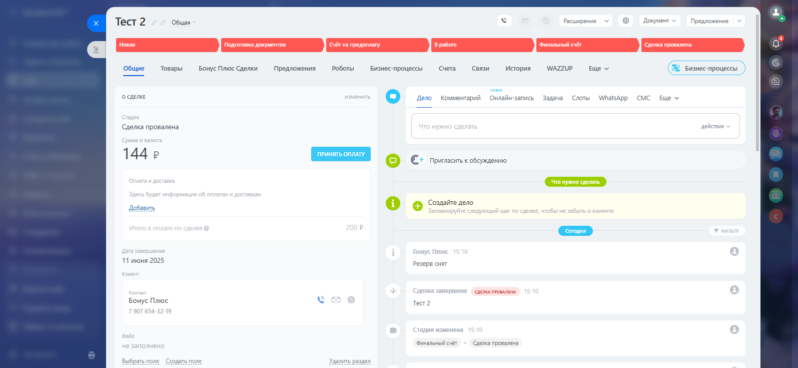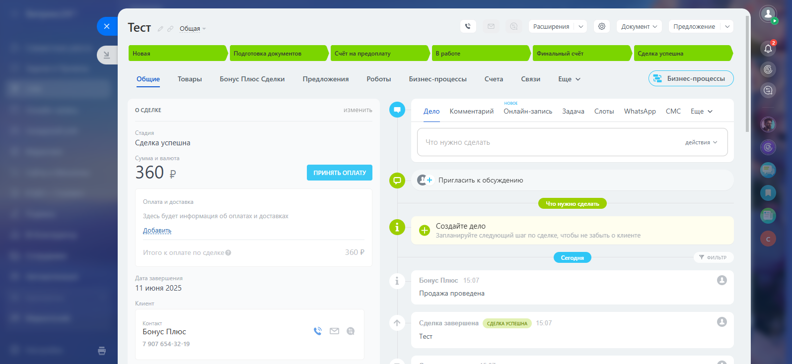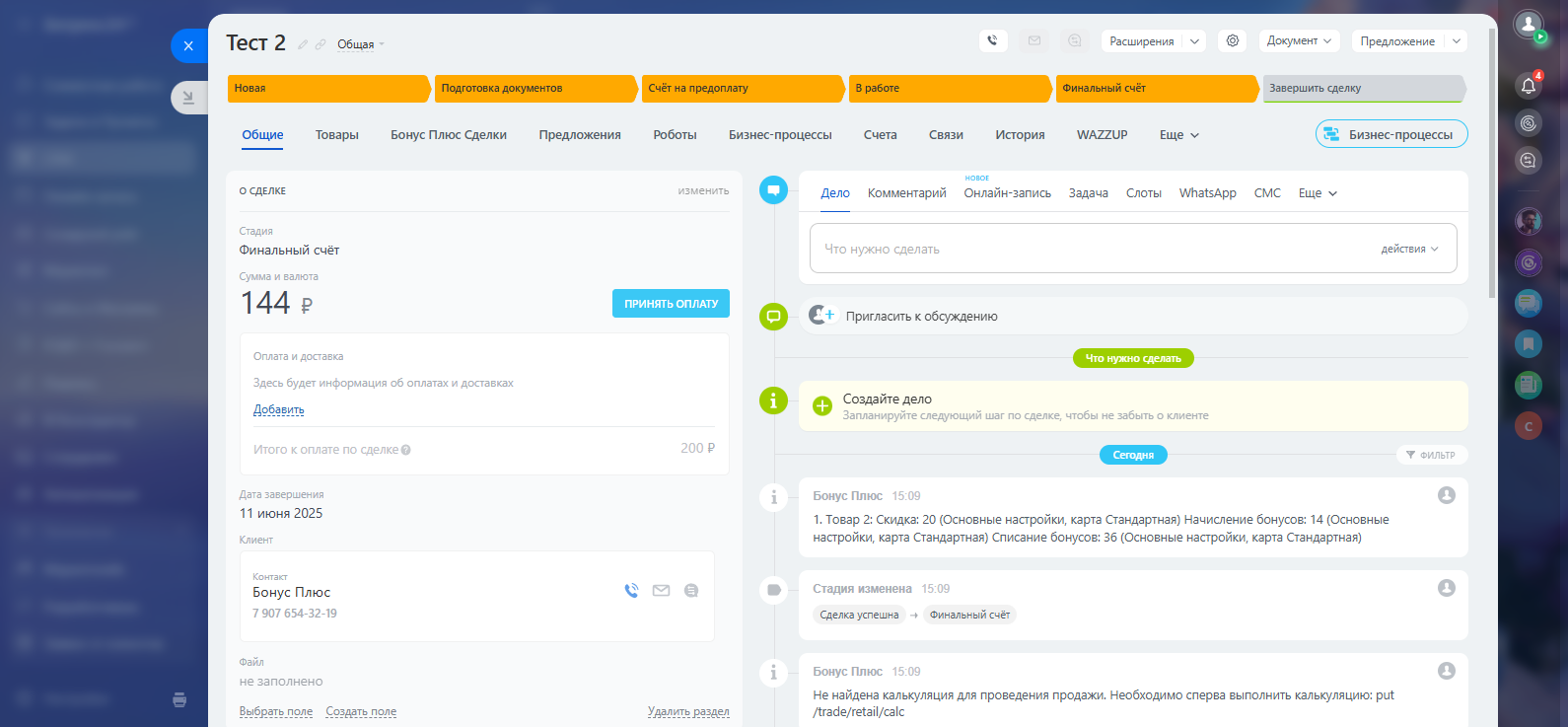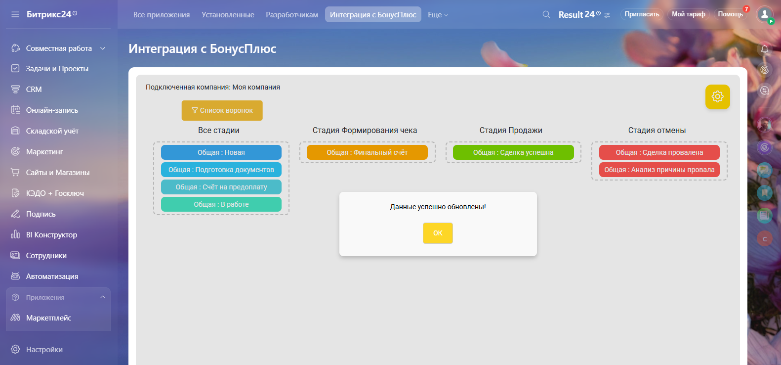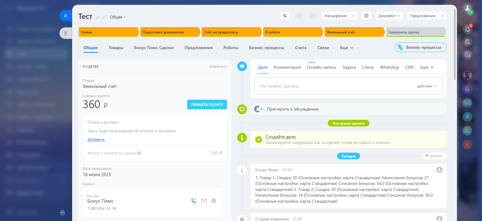 Функционал в Битрикс24 после интеграции с БонусПлюс