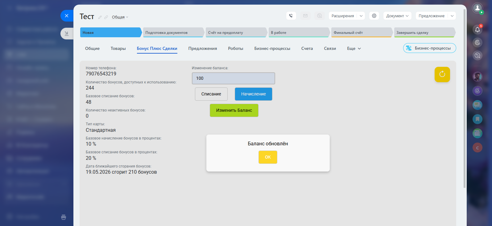 ✓ Получение всей информации о бонусах клиента прямо из Битрикс24