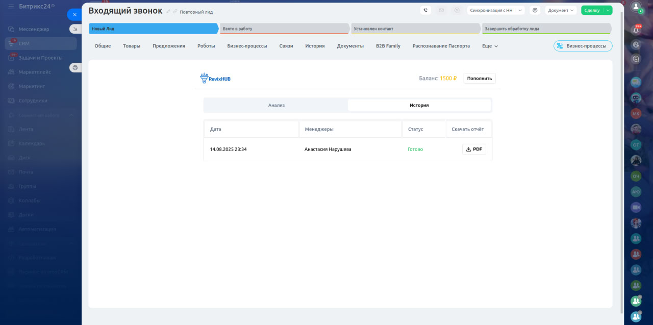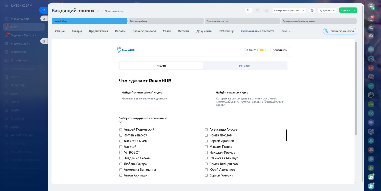 RevixHUB помогает руководителям отделов продаж и менеджерам не терять потенциальных клиентов и возвращать их в работу. Приложение: