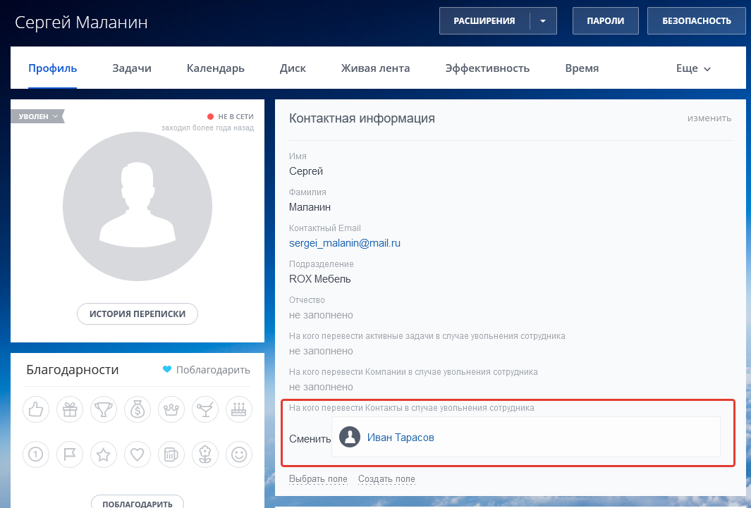 Контакты CRM уволенных сотрудников