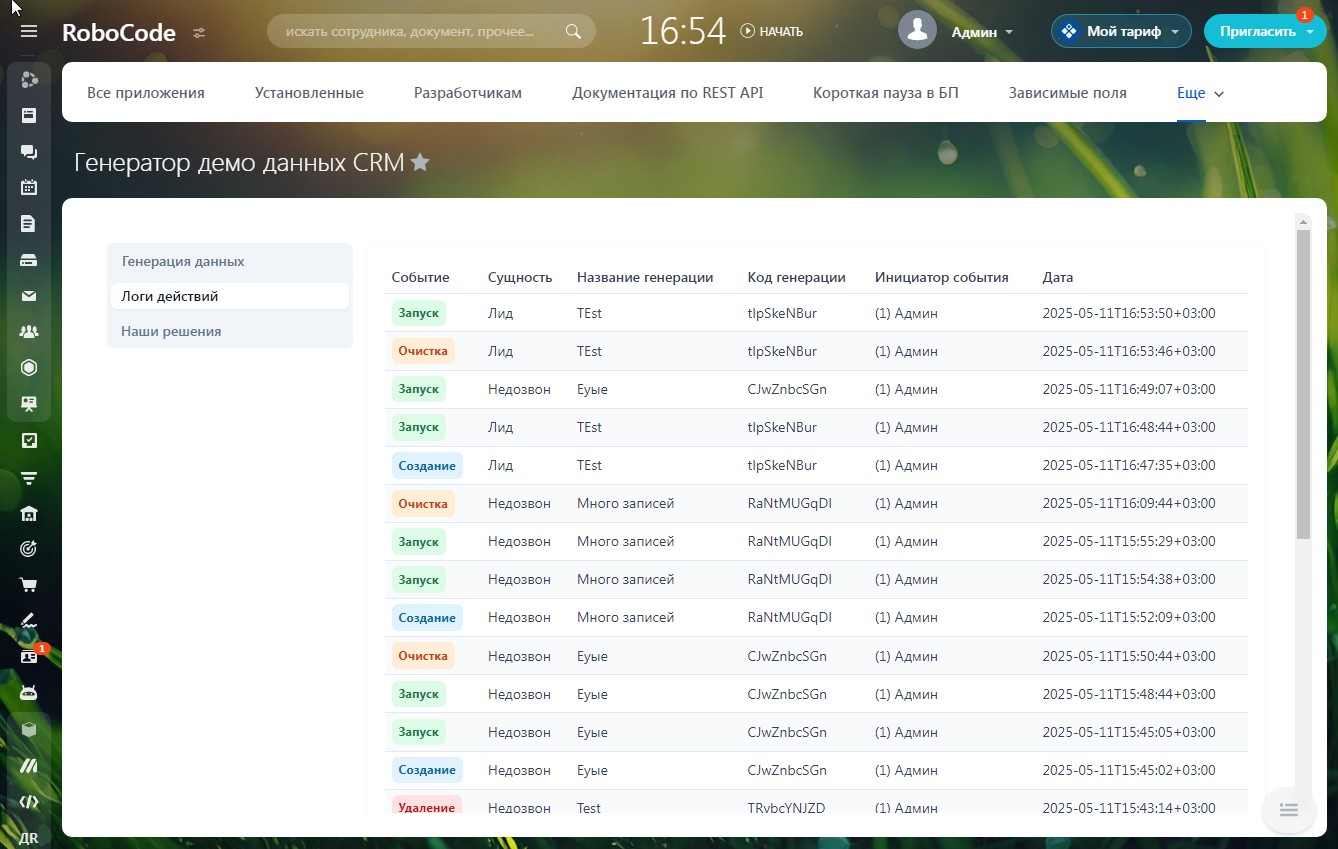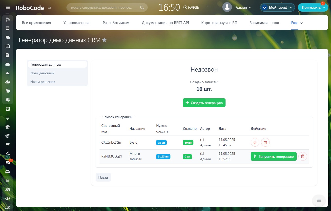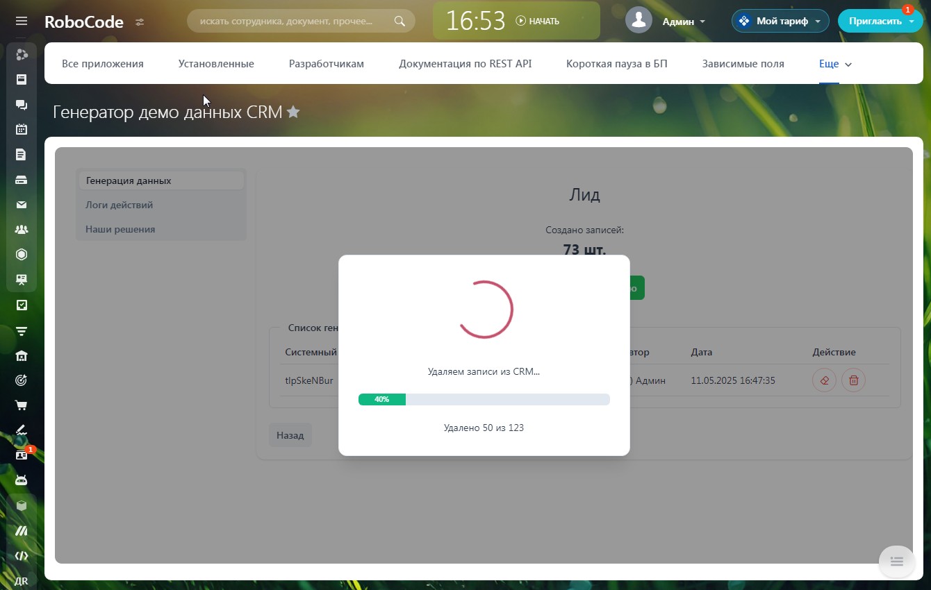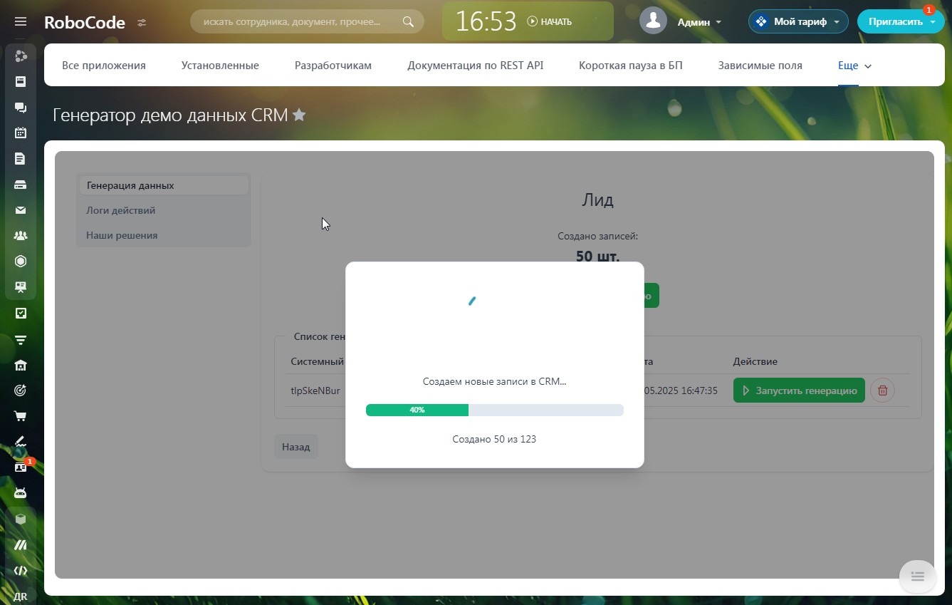 Генератор демо данных CRM - с помощью этого приложения можно быстро и легко создать большое кол-во демо данных в CRM. Приложение будет полезно в разных ситуациях - от настройки CRM интеграторами до обучения сотрудников в компании.
