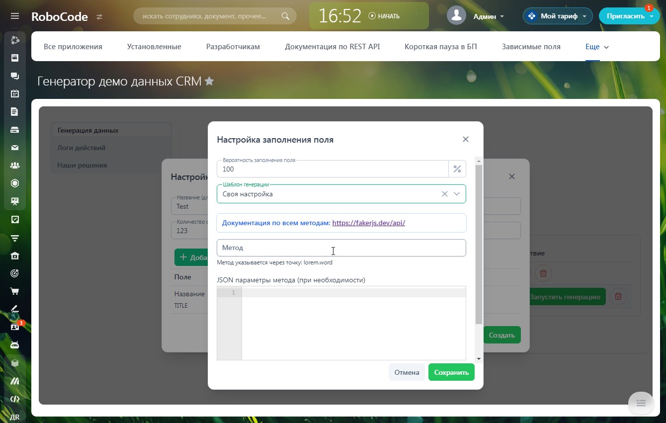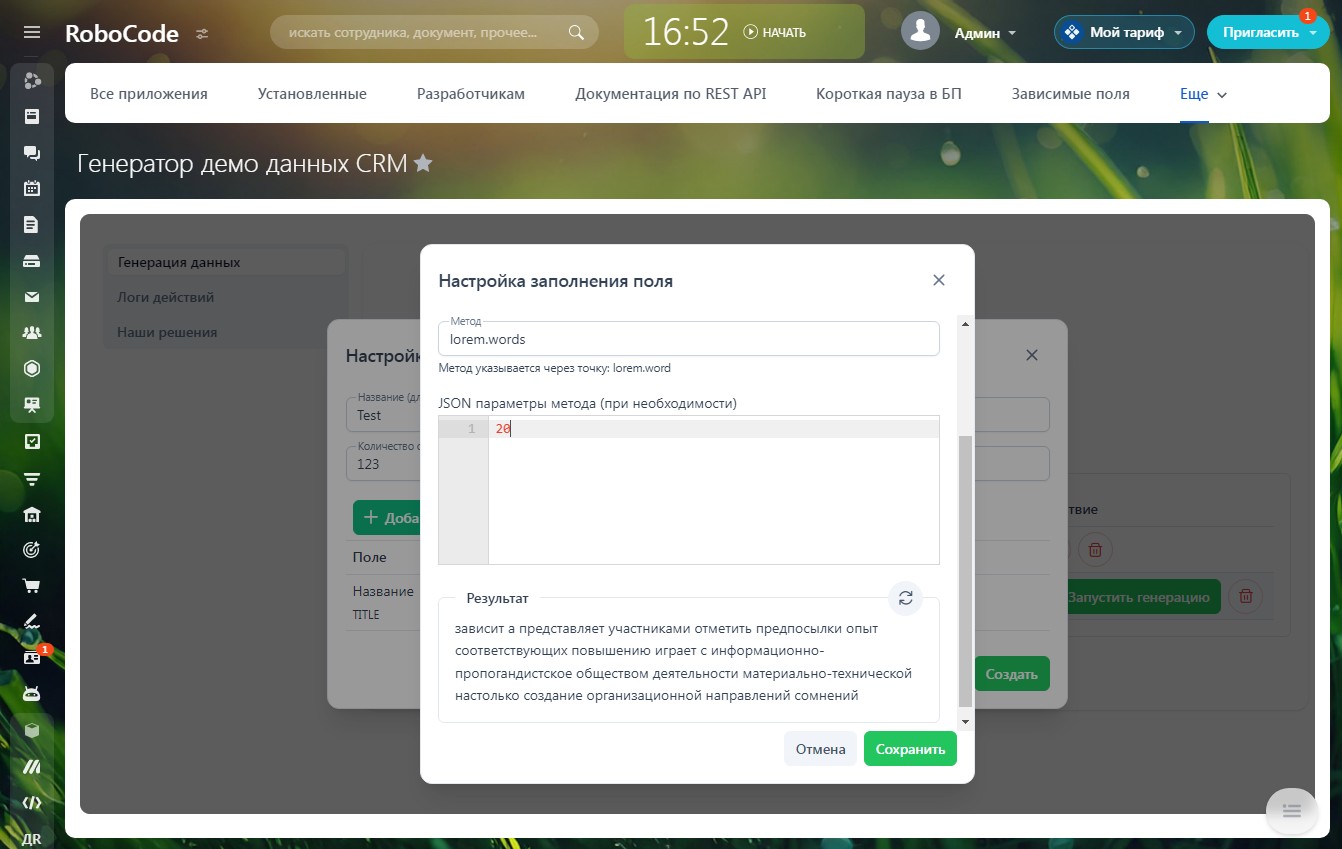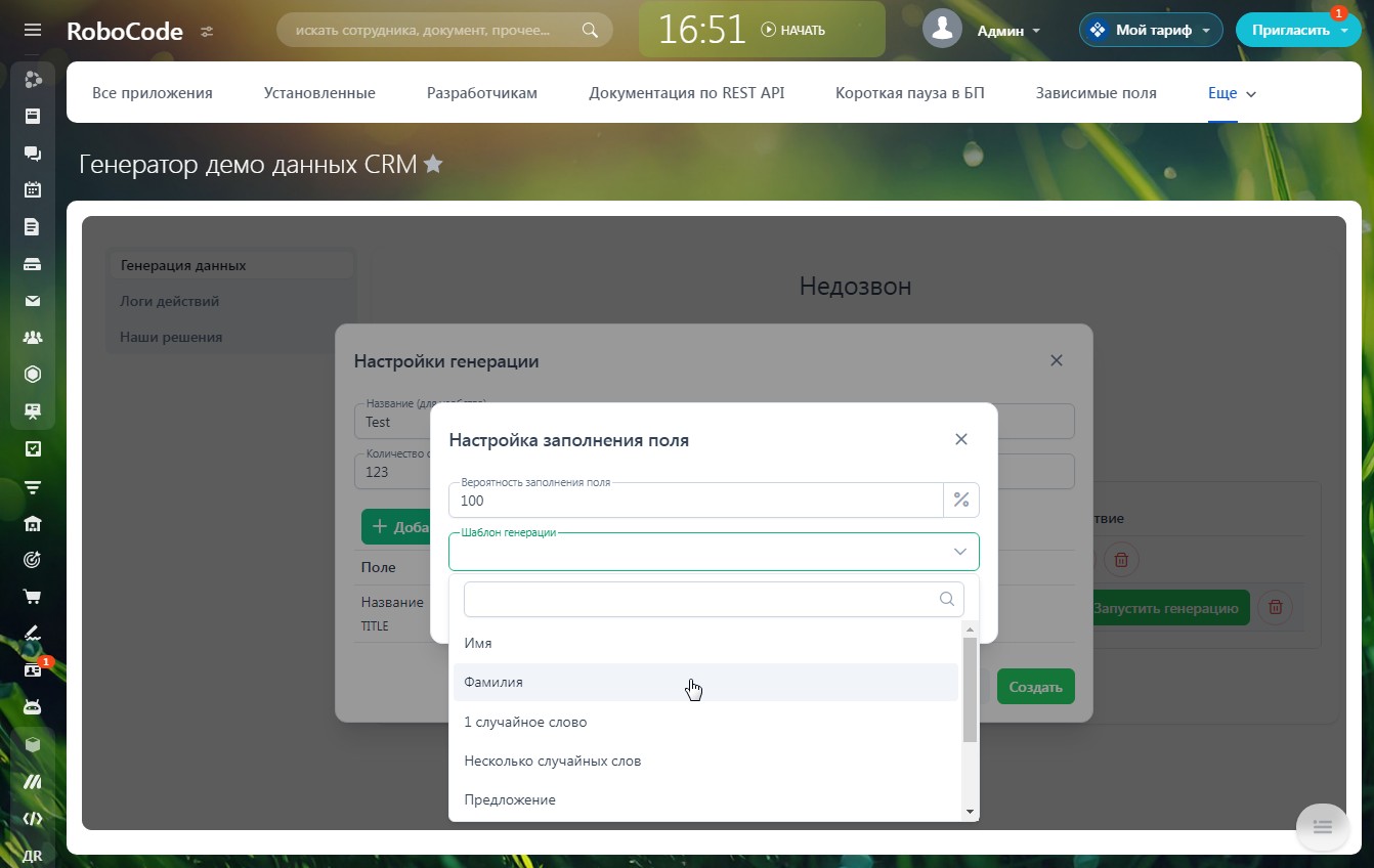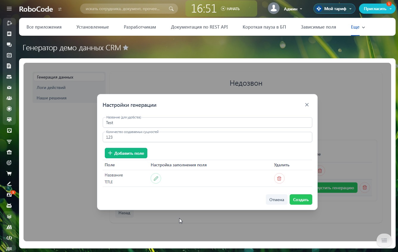 Генератор демо данных CRM - с помощью этого приложения можно быстро и легко создать большое кол-во демо данных в CRM. Приложение будет полезно в разных ситуациях - от настройки CRM интеграторами до обучения сотрудников в компании.