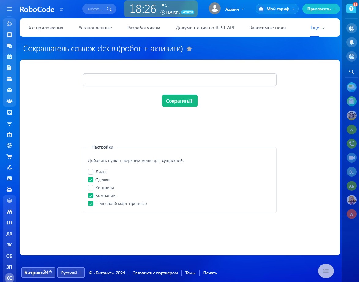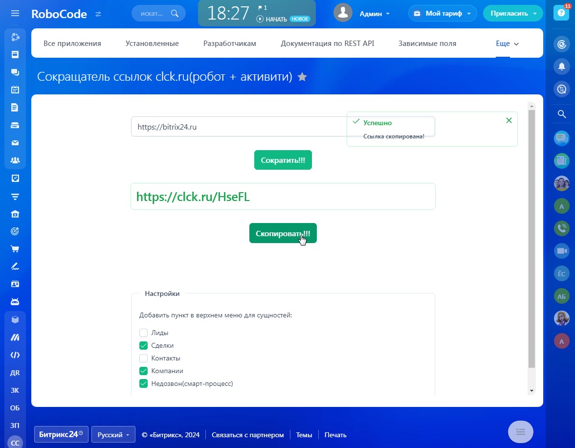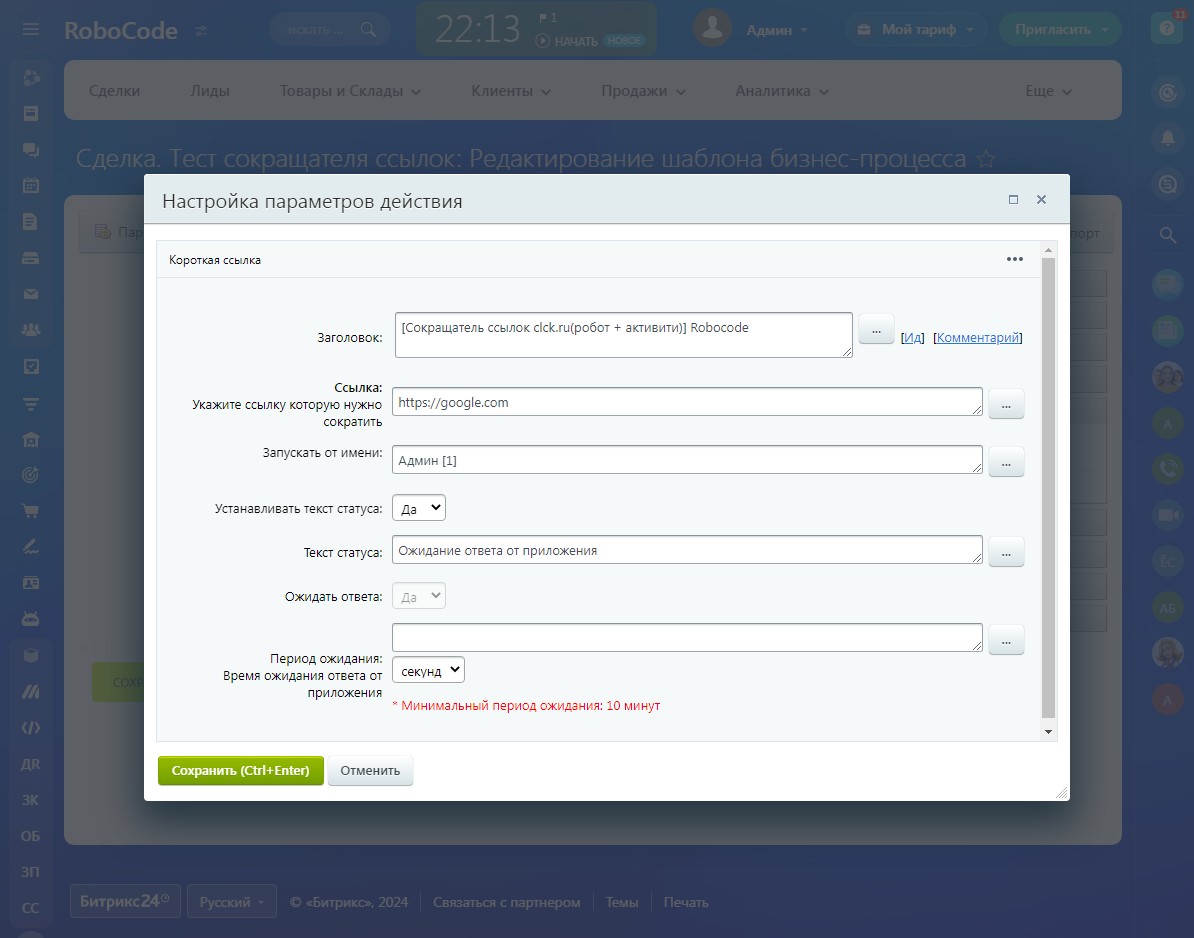 Робот и активити для бизнес-процессов, который сокращает ссылки через бесплатный сервис clck.ru