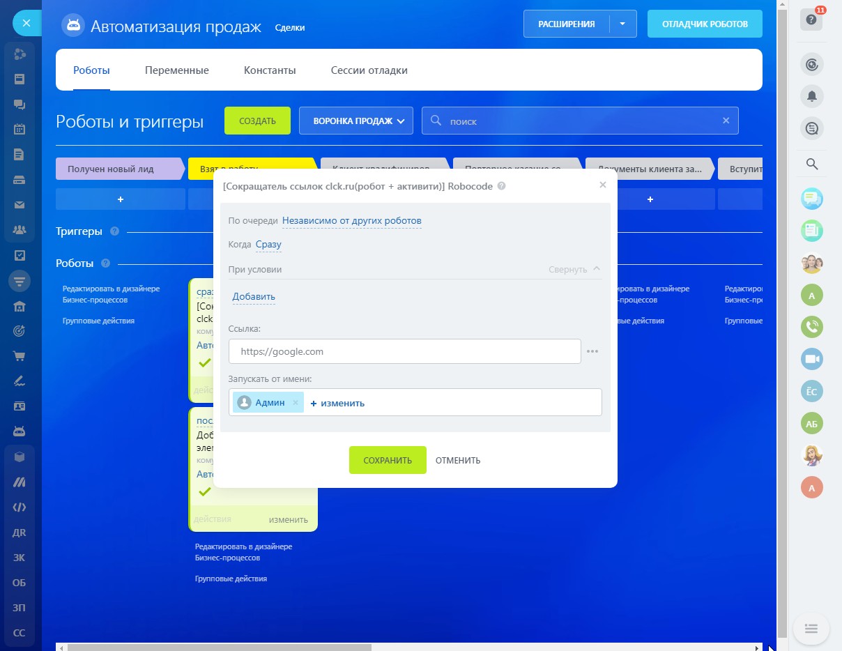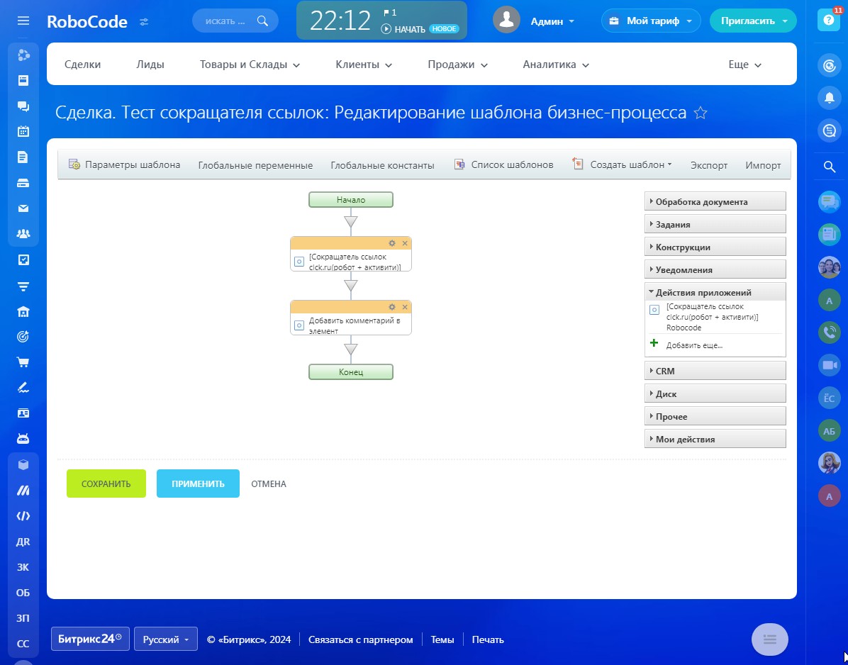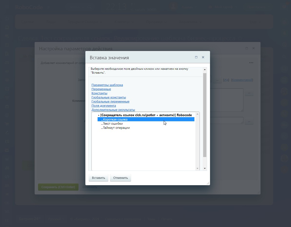 Робот и активити для бизнес-процессов, который сокращает ссылки через бесплатный сервис clck.ru