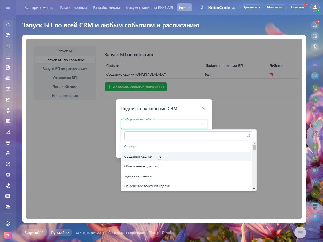 Запуск БП по всей CRM, любым событиям и расписанию