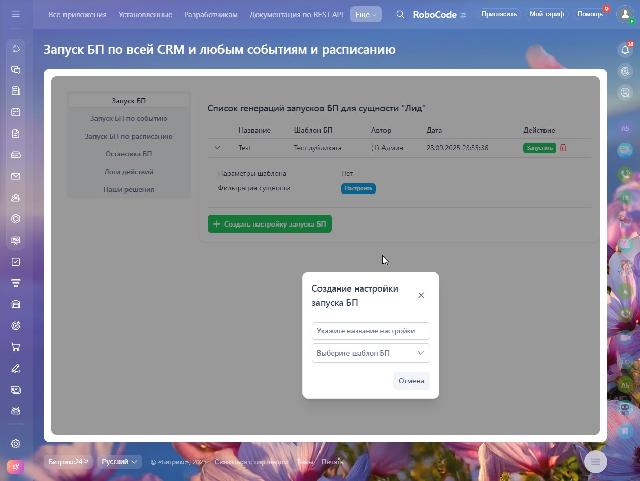 Наше приложение превращает Битрикс24 в мощный центр автоматизации, предоставляя вам неограниченные возможности для запуска бизнес-процессов. Забудьте о рутине и сосредоточьтесь на главном.