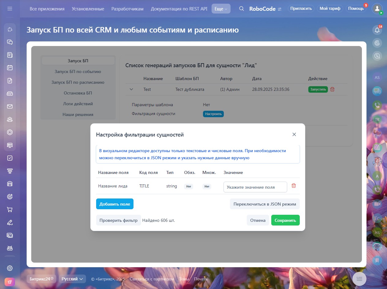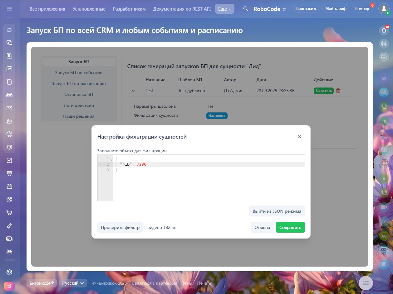 Гибкая фильтрация: Запускайте процессы только для тех данных, которые нужны, используя точные условия фильтрации. Это гарантирует, что автоматизация будет действовать адресно и без ошибок.