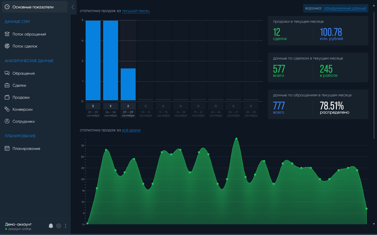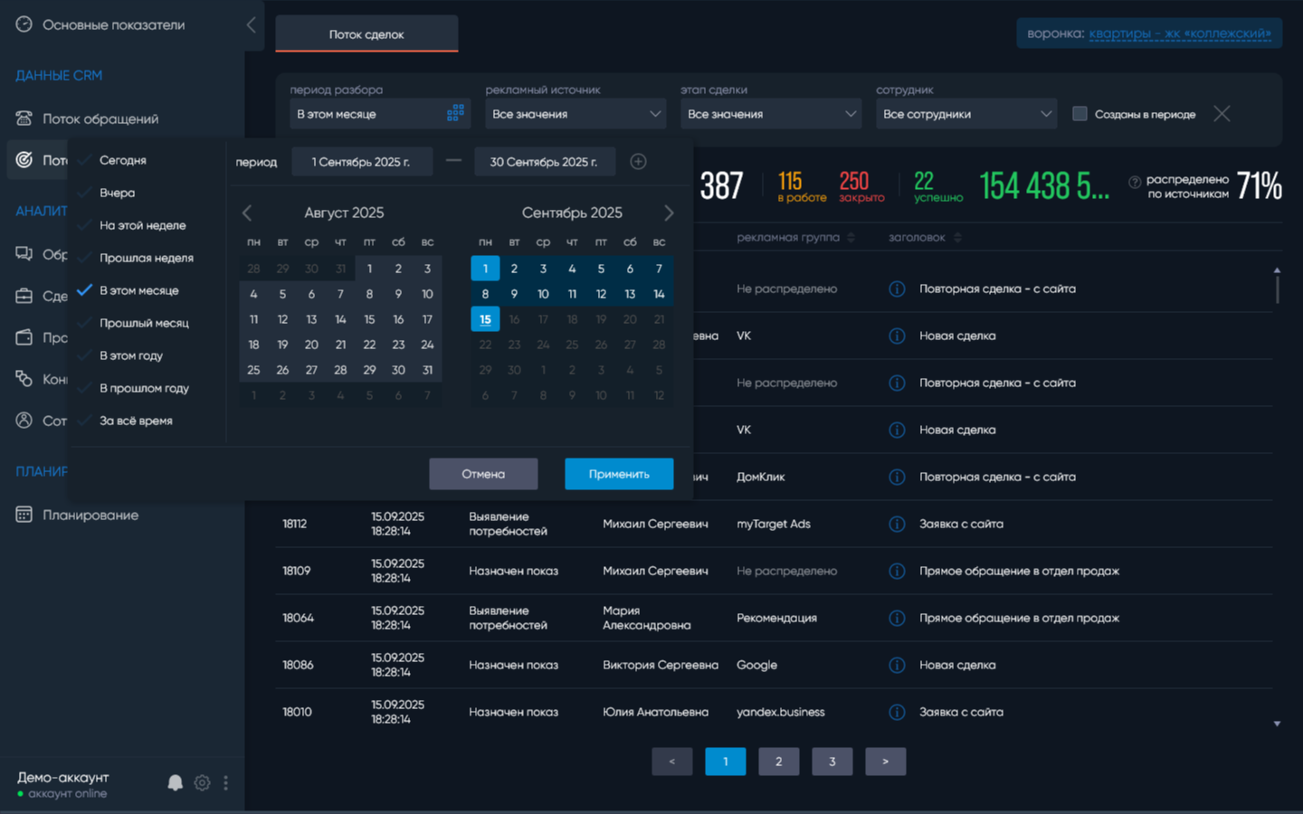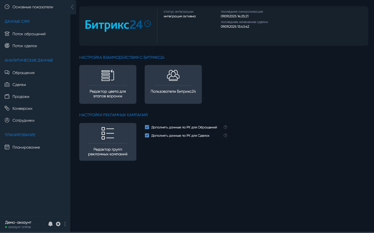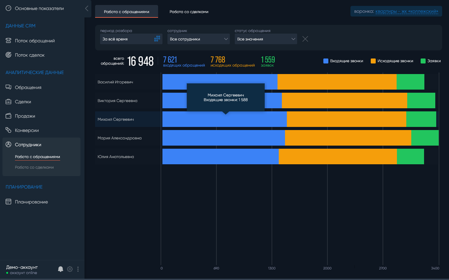 - легко и в режиме реального времени отслеживать обращения и создаваемые сделки;