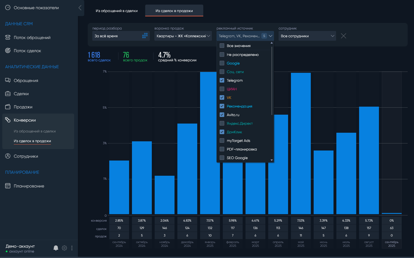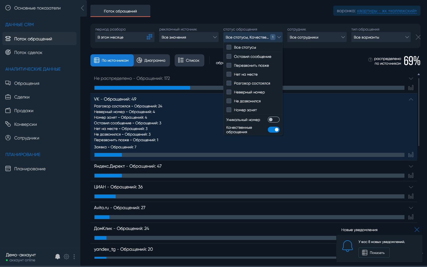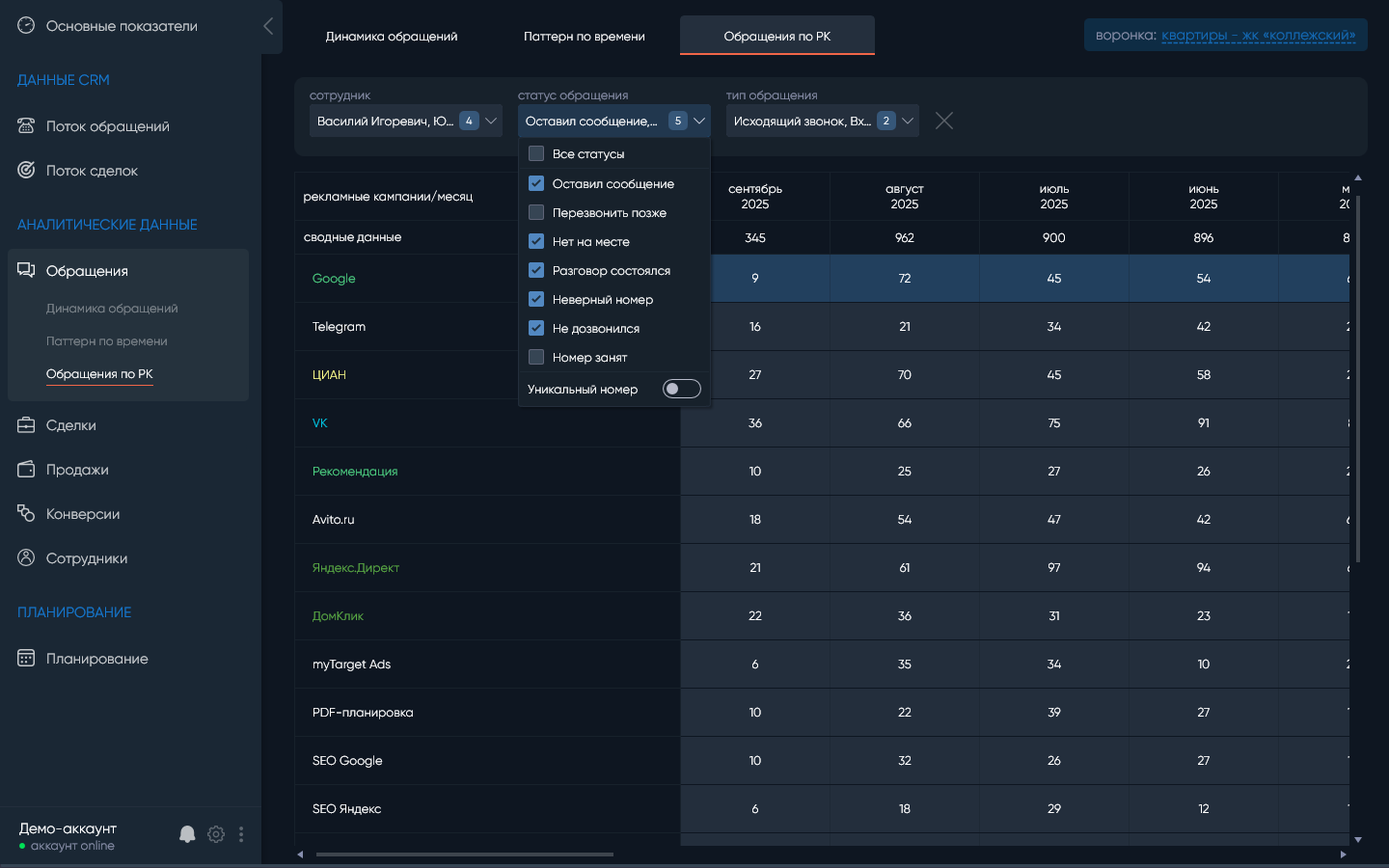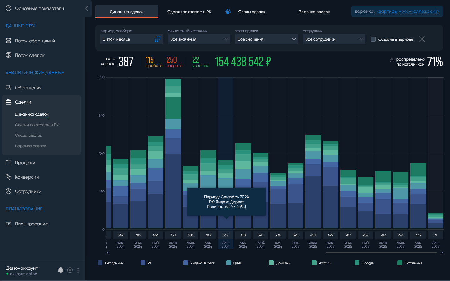 - легко и в режиме реального времени отслеживать обращения и создаваемые сделки;