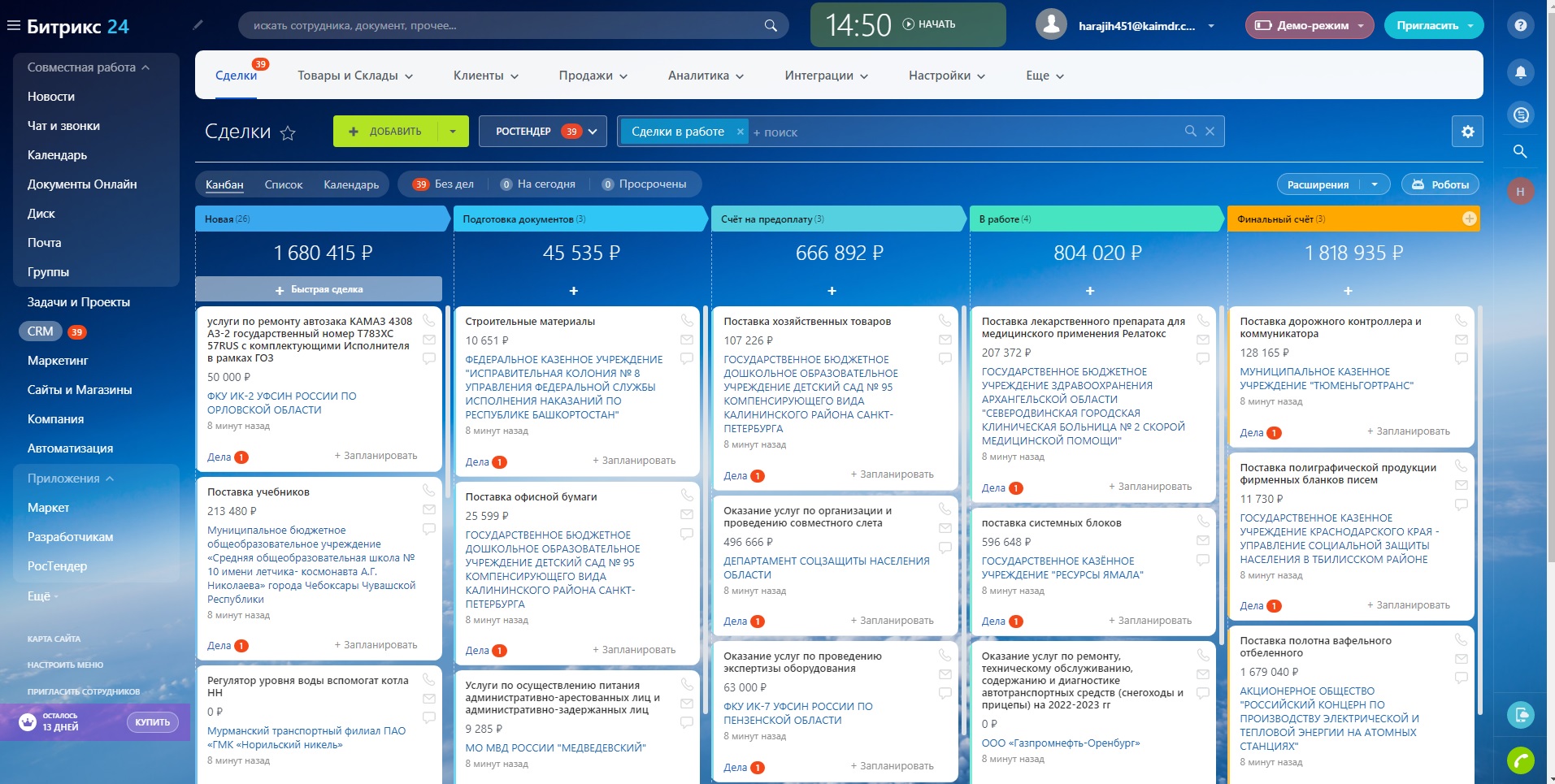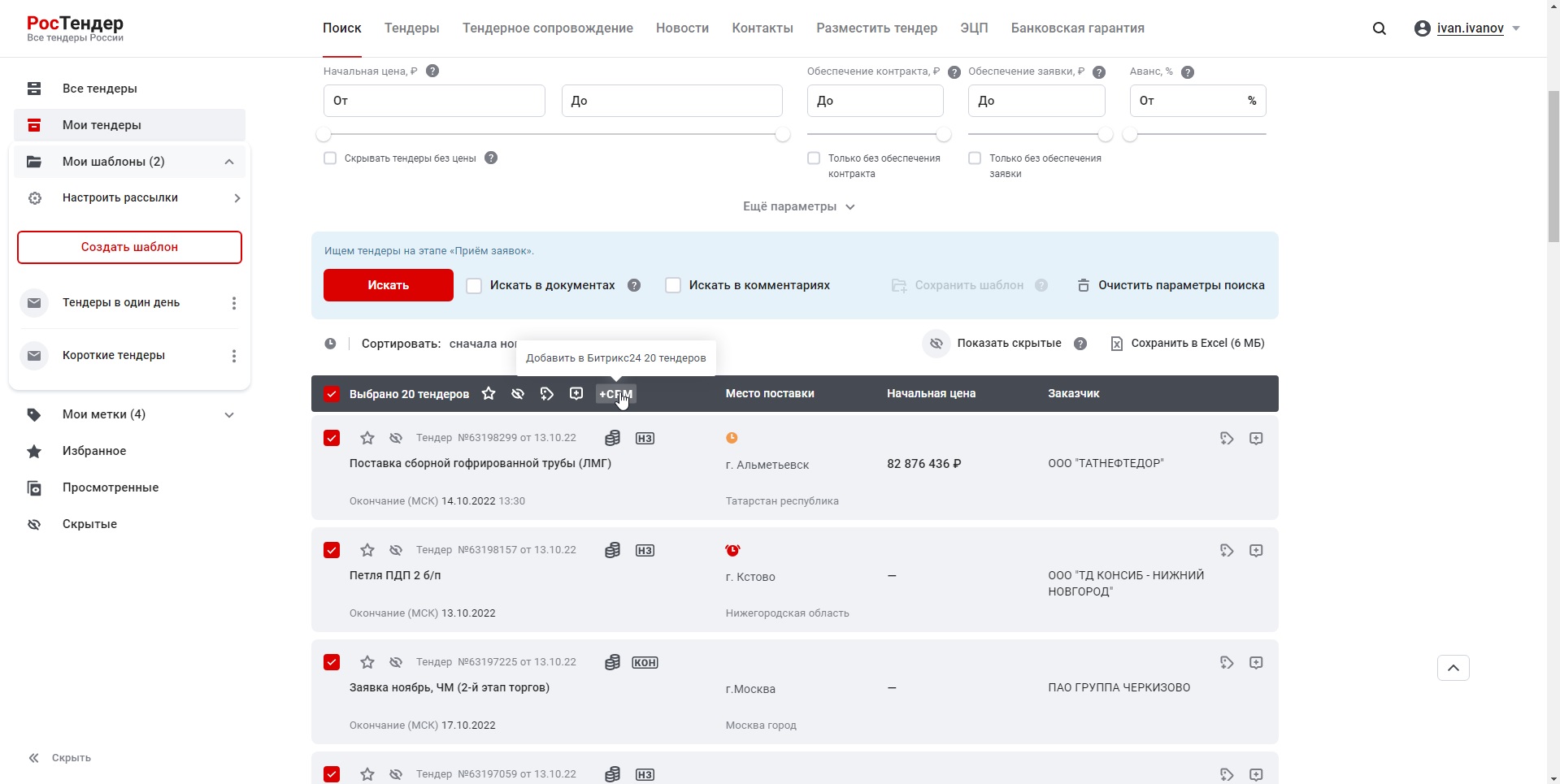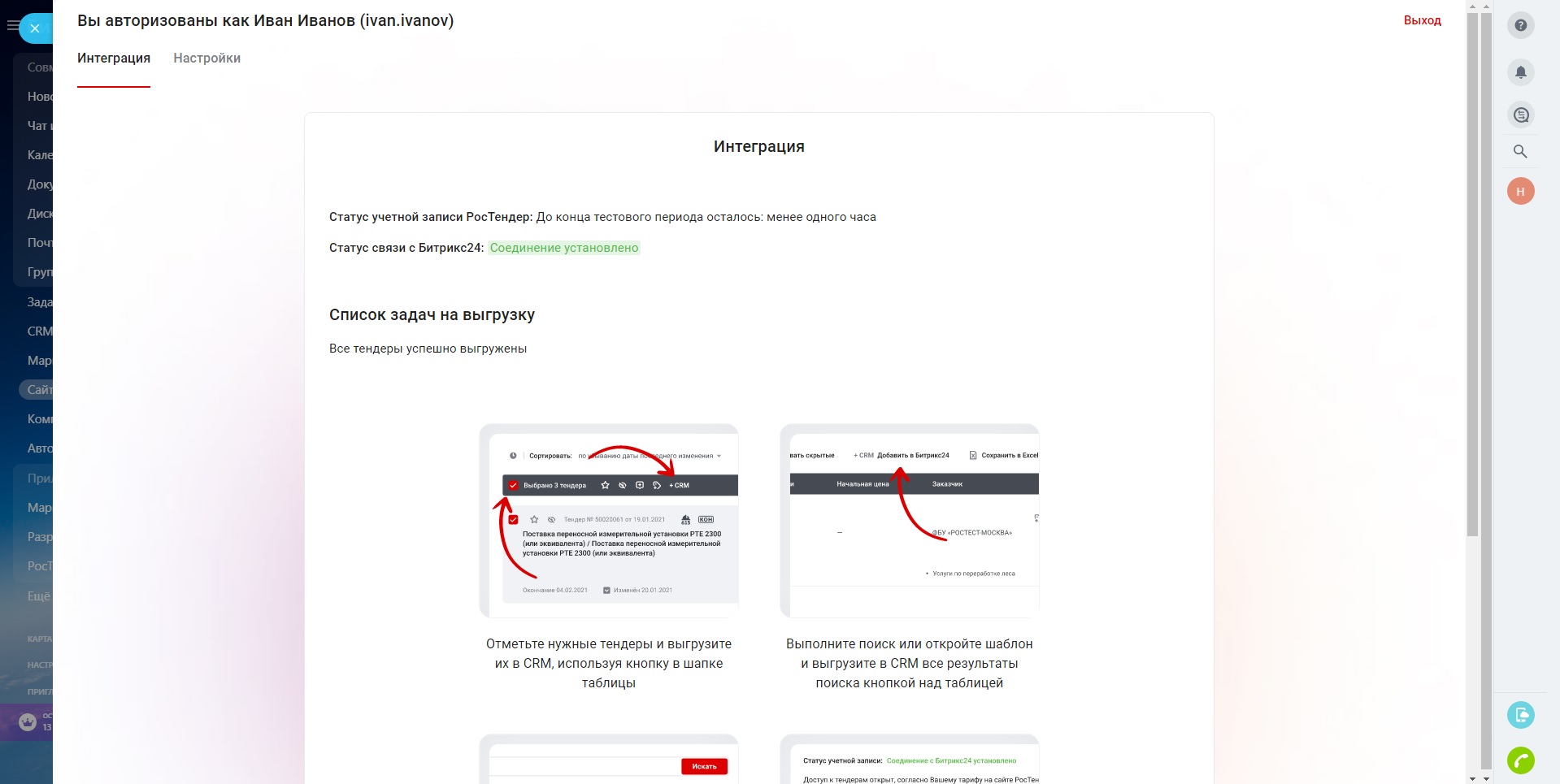 Все нужные закупки в вашем Битрикс24. Интеграция РосТендер с вашей CRM. Вся информация по тендеру выгружается в лид или сделку в один клик.