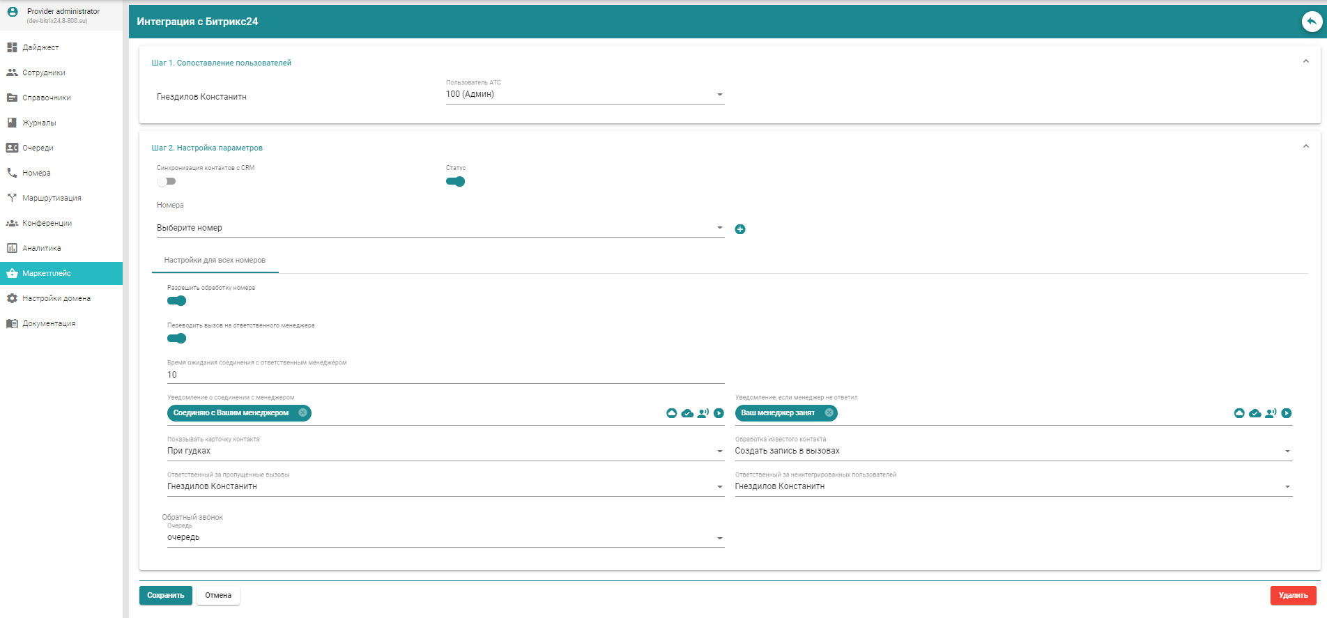 - распределение звонков на ответственного менеджера в Битрикс24;
