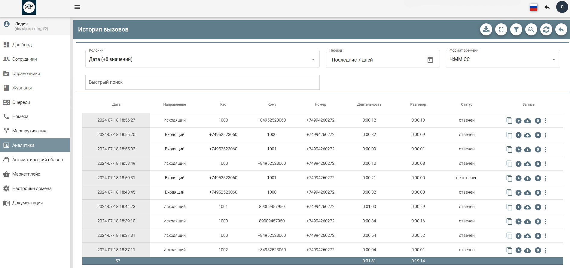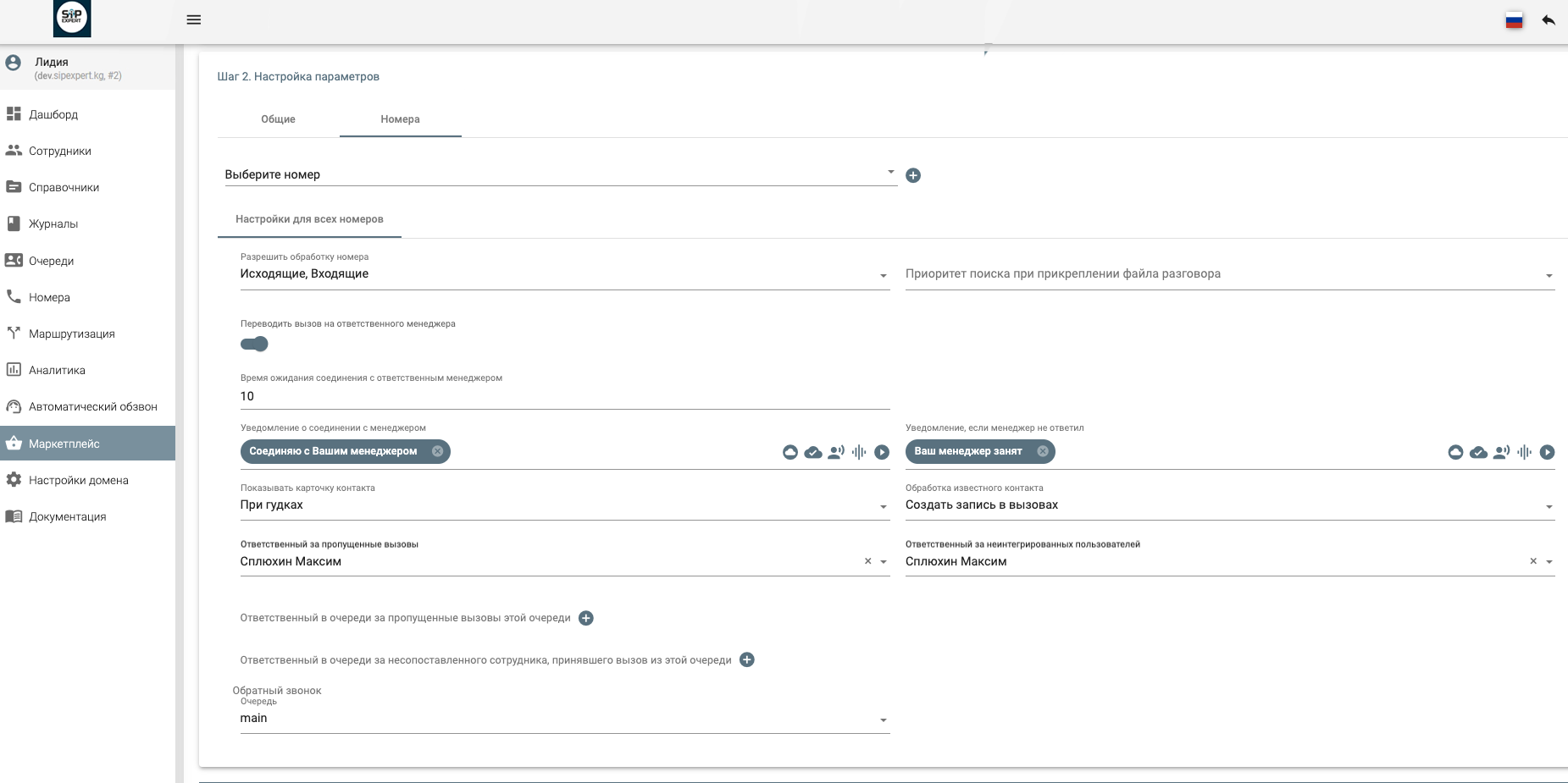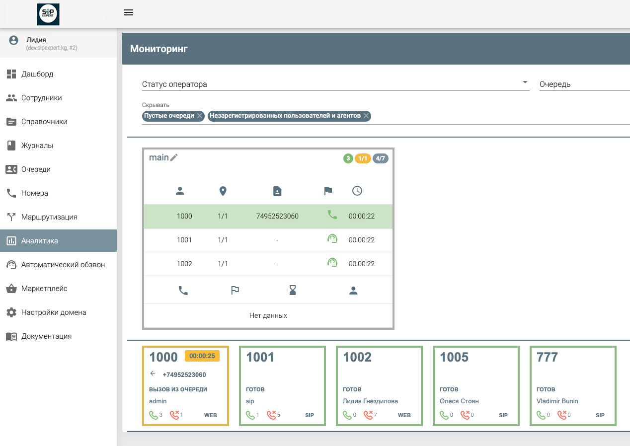 Подключив интеграцию с SipExpert, Вы получите следующее: