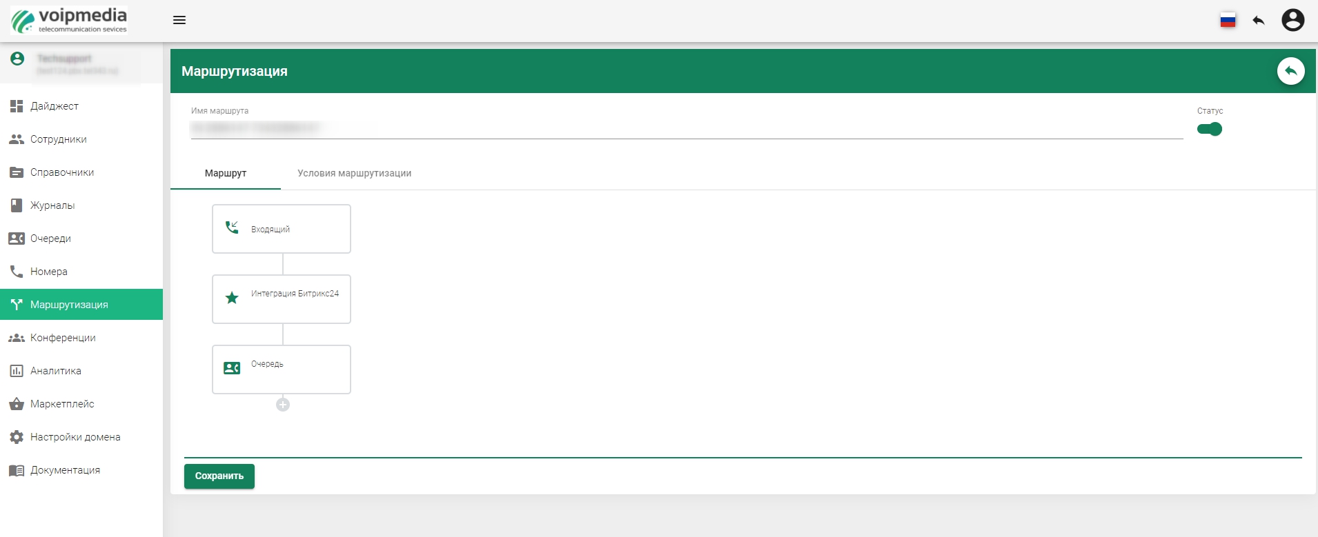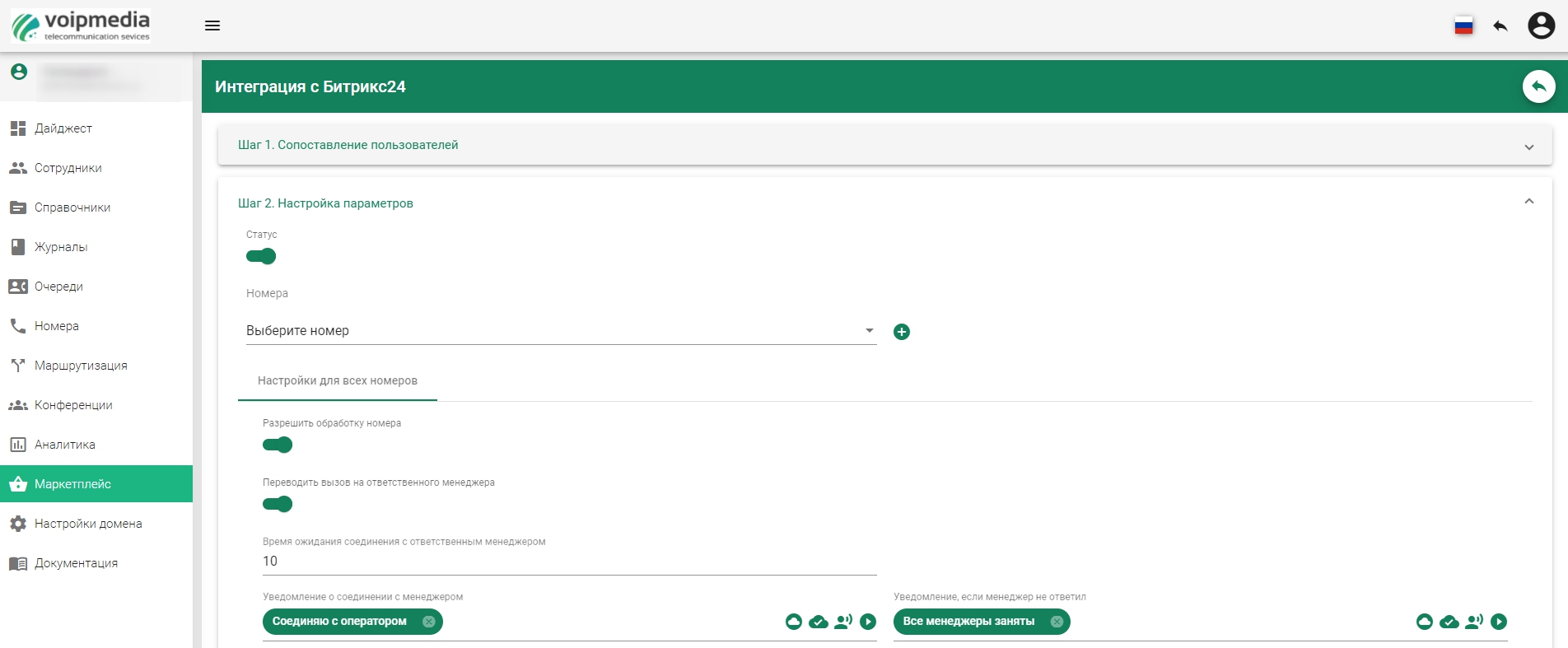 Подключив интеграцию с Voipmedia Вы получите следующее: