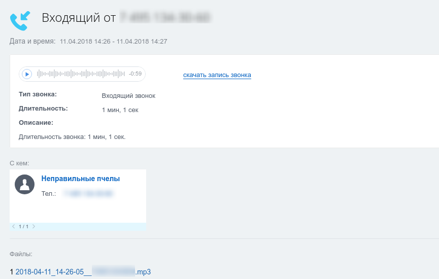 - сохранение звонков в карточку клиента с возможностью их прослушивания.