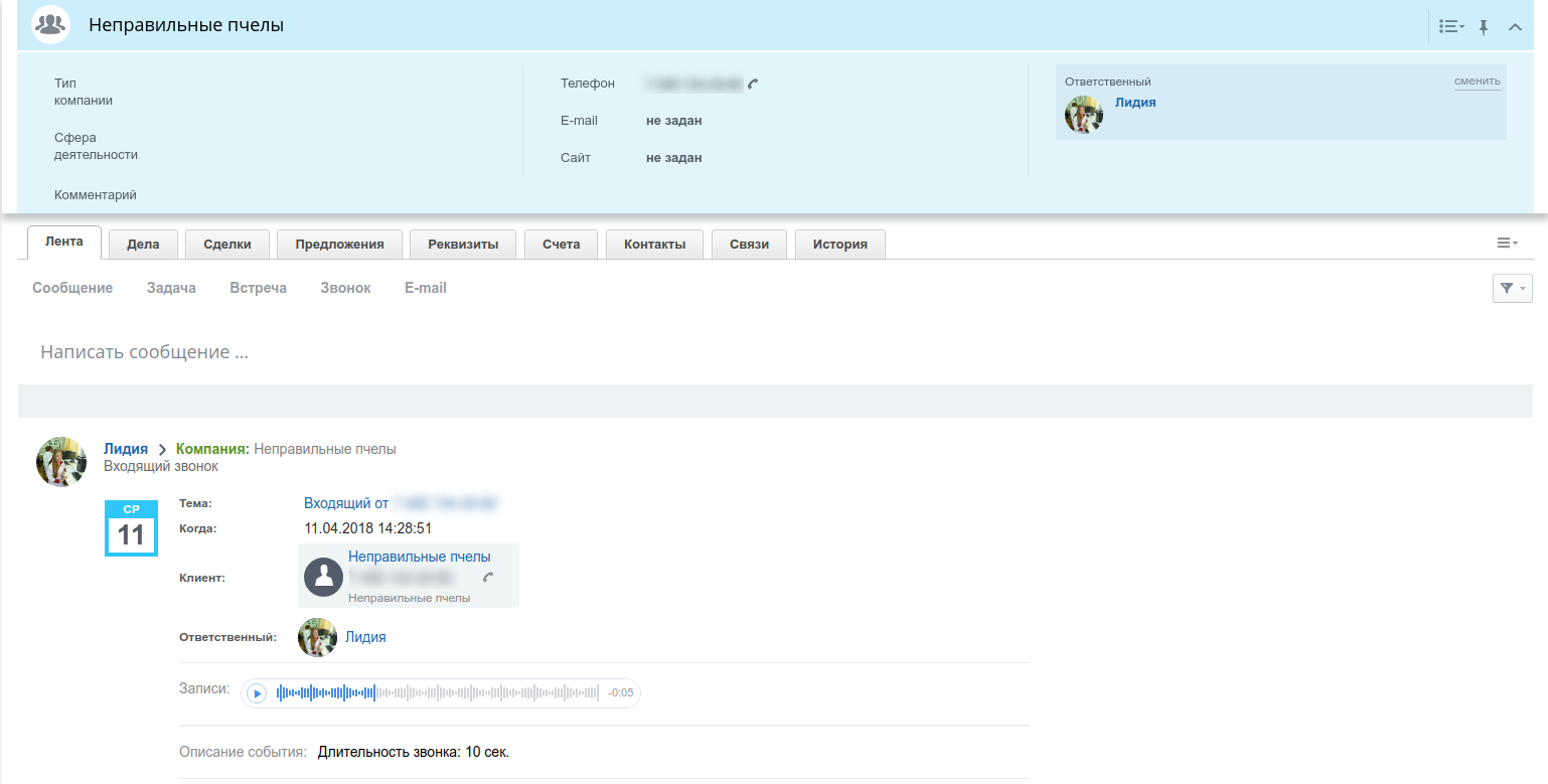 - автоматическое создание лидов при входящем или исходящем звонке;