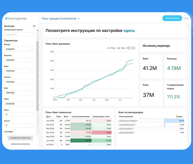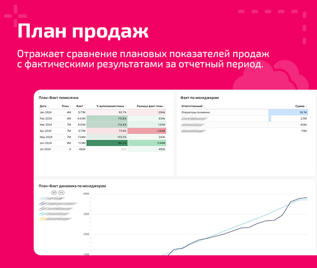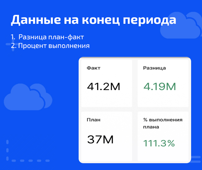 Сравнивайте плановые и фактические показатели продаж за выбранный период