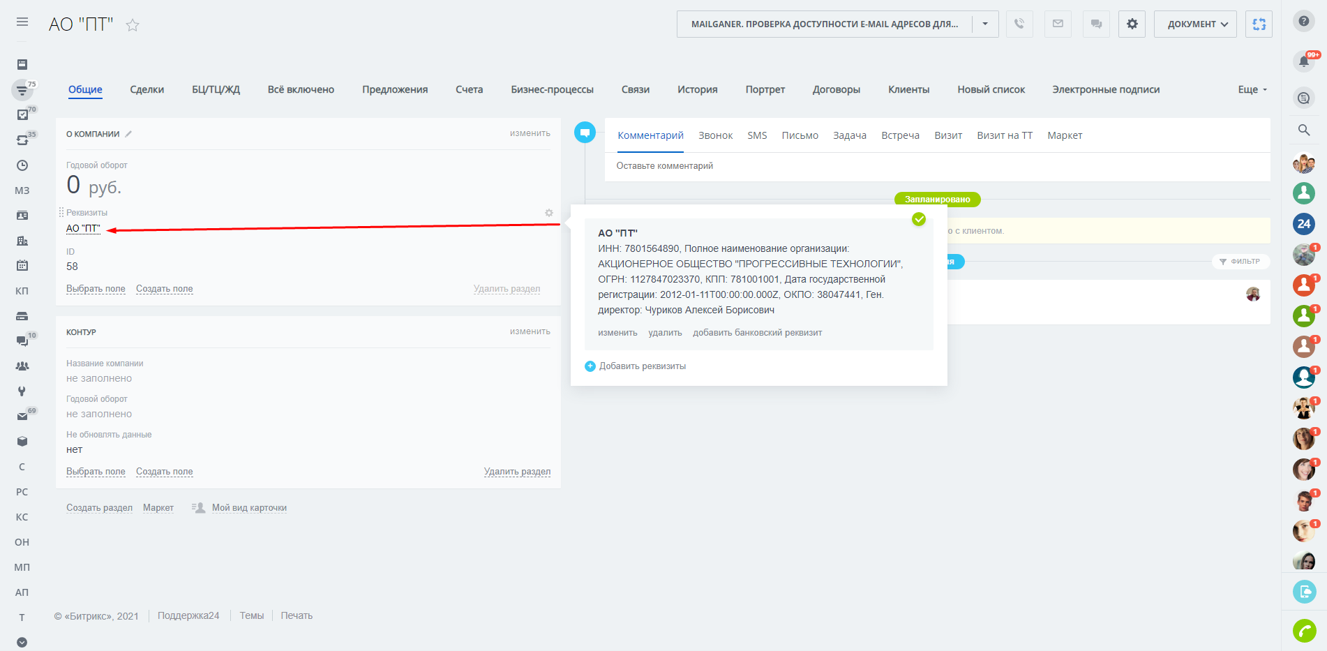 Работая в сфере B2B, при взаимодействии с клиентами, подрядчиками и партнерами, необходимо знать все данные о компании. Но ,к сожалению, не всегда получается быстро получить реквизиты и внести их в Битрикс24, и чаще всего приходится сделать несколько звонков, написать пару тройку писем, чтобы получить необходимые данные.