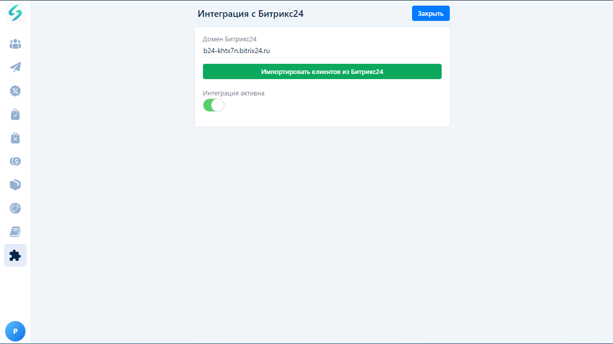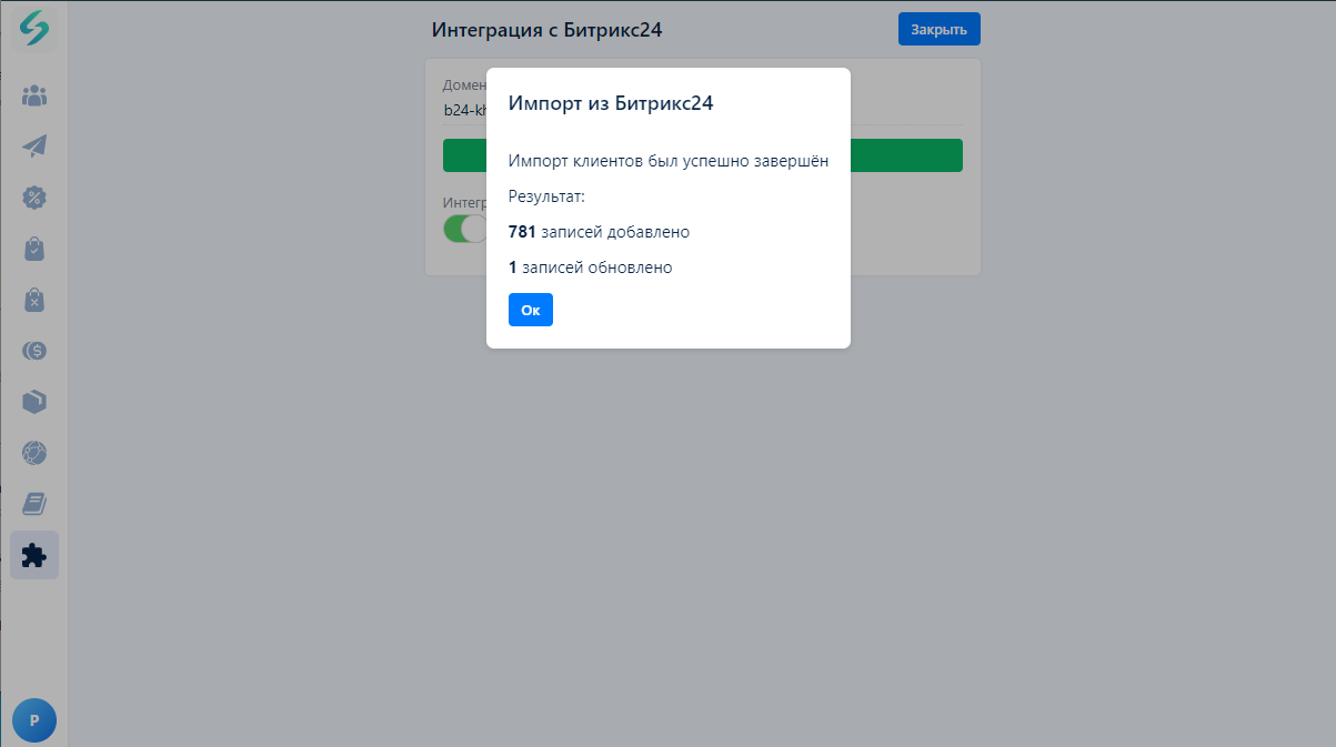 Готовая интеграция с платформой автоматизации маркетинга и лояльности Salebridge, которая позволяет сделать первичную выгрузку всех клиентов и далее выгружать автоматически новых клиентов из базы.