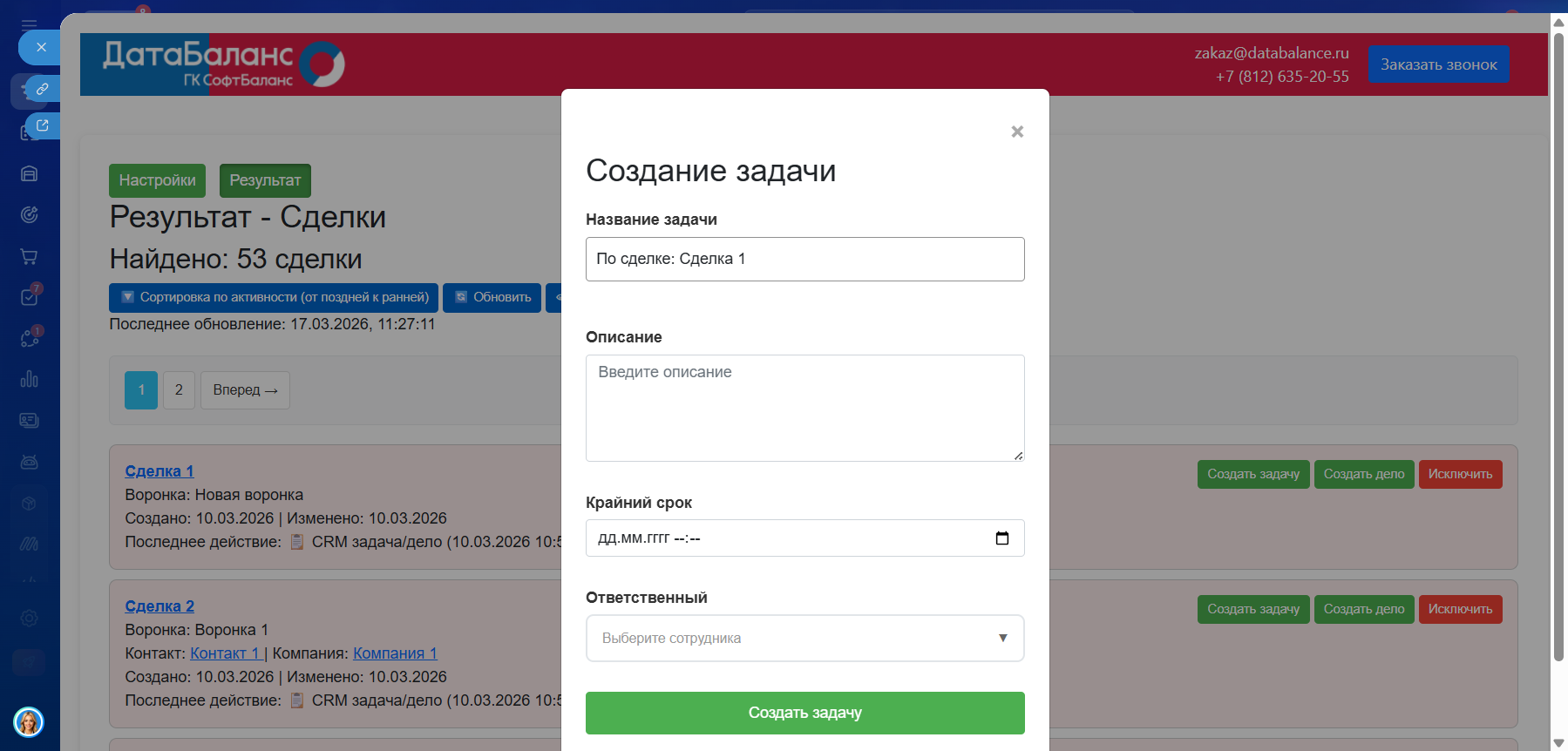 6) Работайте со списком: создавайте задачи и дела, скрывайте лишние сделки (восстанавливайте при необходимости), сортируйте по дате последней активности.