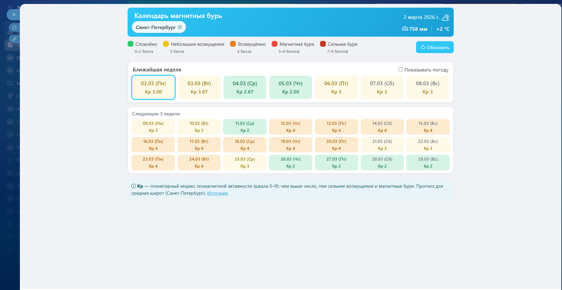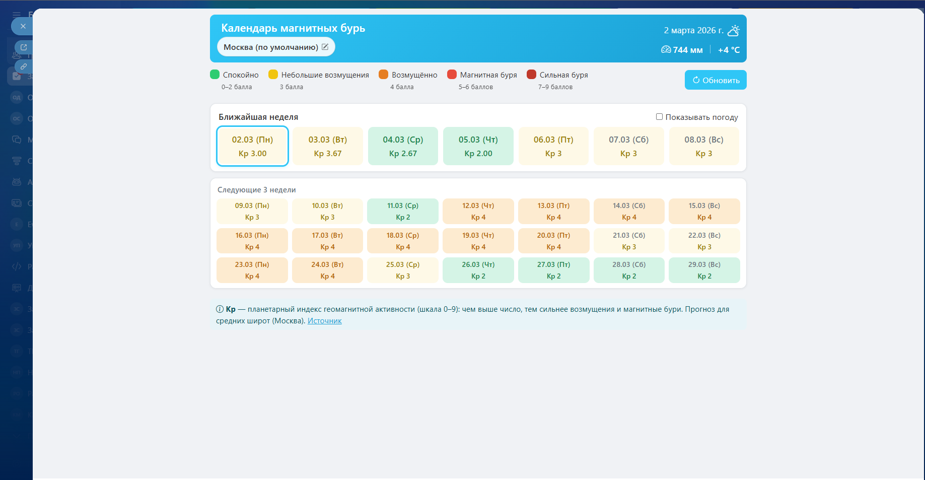 Календарь магнитных бурь