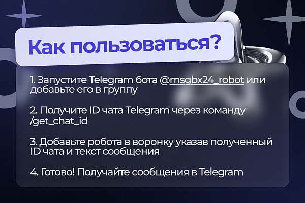 Робот отправляет сообщение в телеграм через готовый бот (t.me/msgbx24_robot)