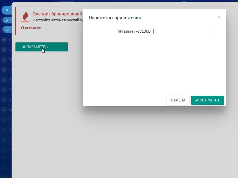 Приложение экспортирует бронирования Онлайн-записи из CRM Битрикс24 в IIKO. Для подключения к IIKO необходимо задать корректные параметры на форме настройки приложения. API ключ iikoCLOUD можно получить, обратившись в техподдержку IIKO https://iiko.ru/support.