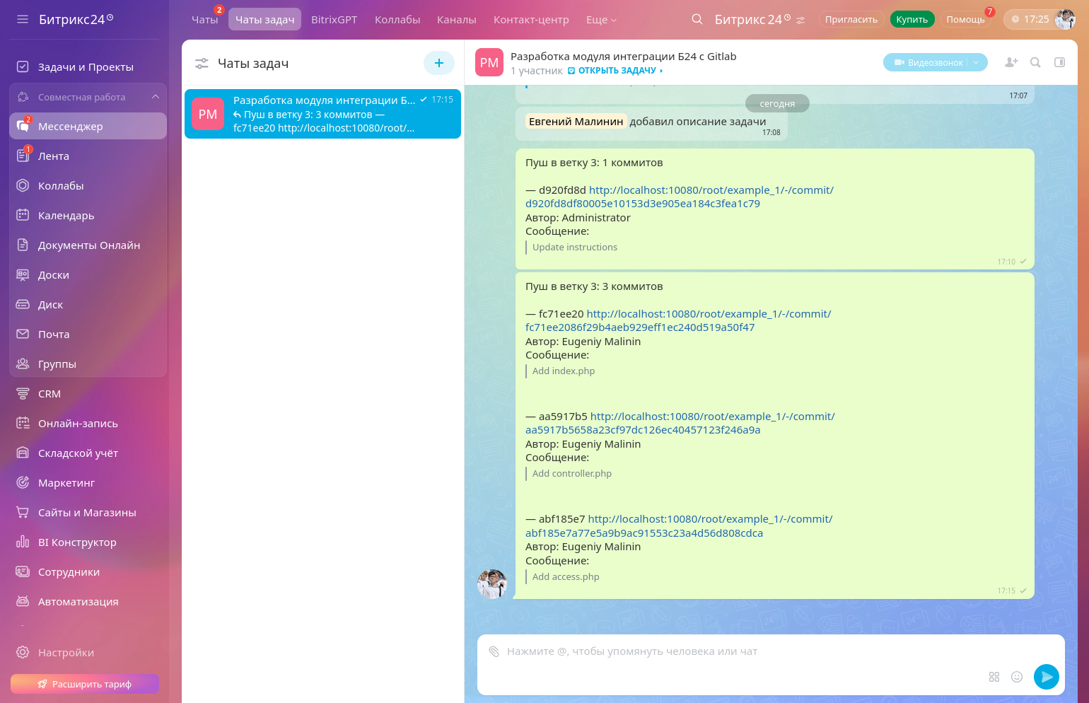 3. Позволяет быстро анализировать код, переходя по ссылкам из Битрикс24 в GitLab.