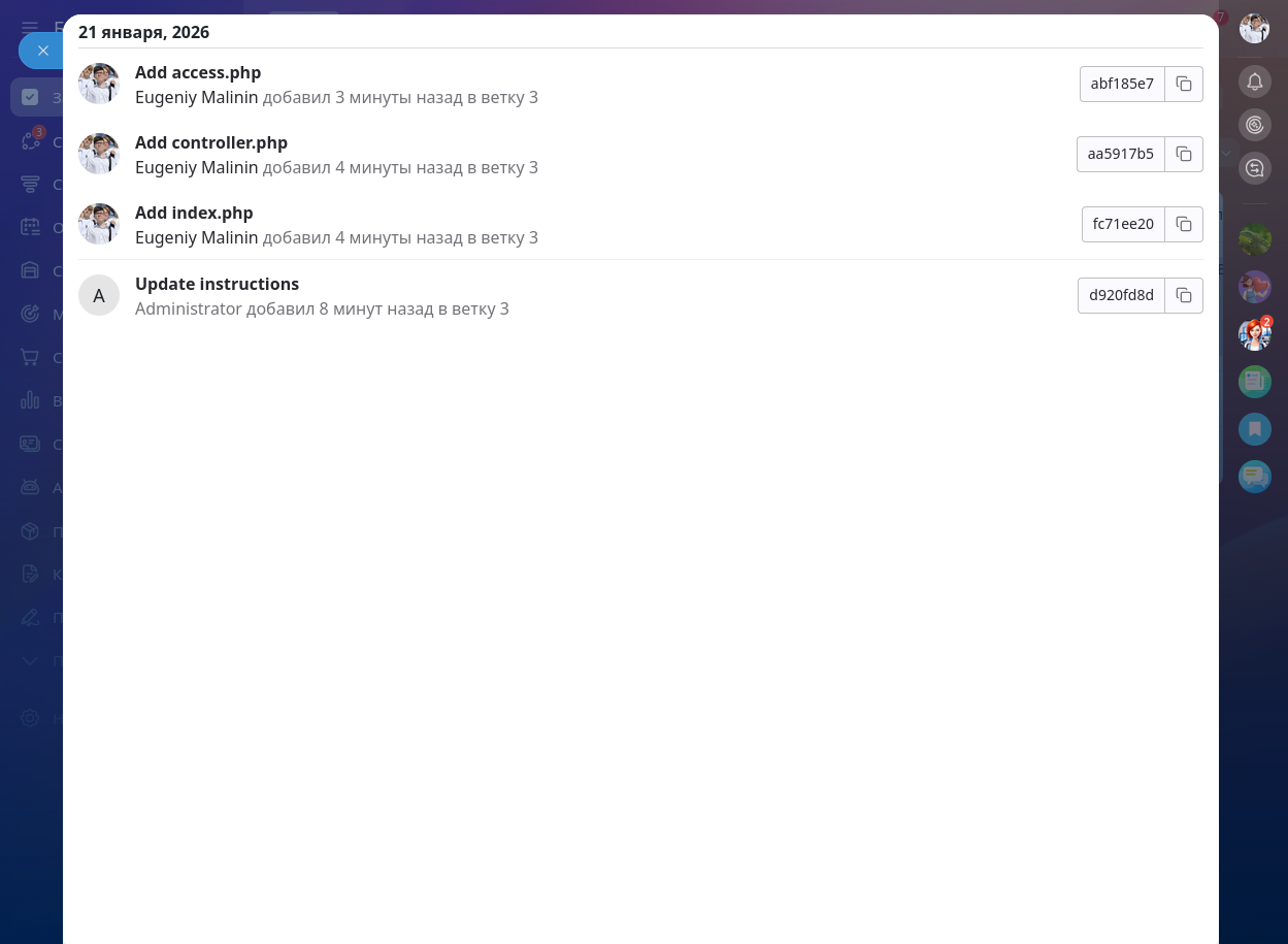 6. Быстрый переход к коммиту в GitLab и копирование его хэша прямо из интерфейса Битрикс24.