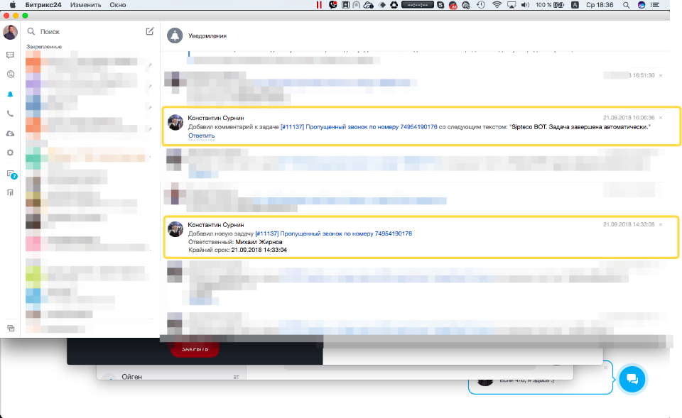 Пропущенные в чат Битрикс24: