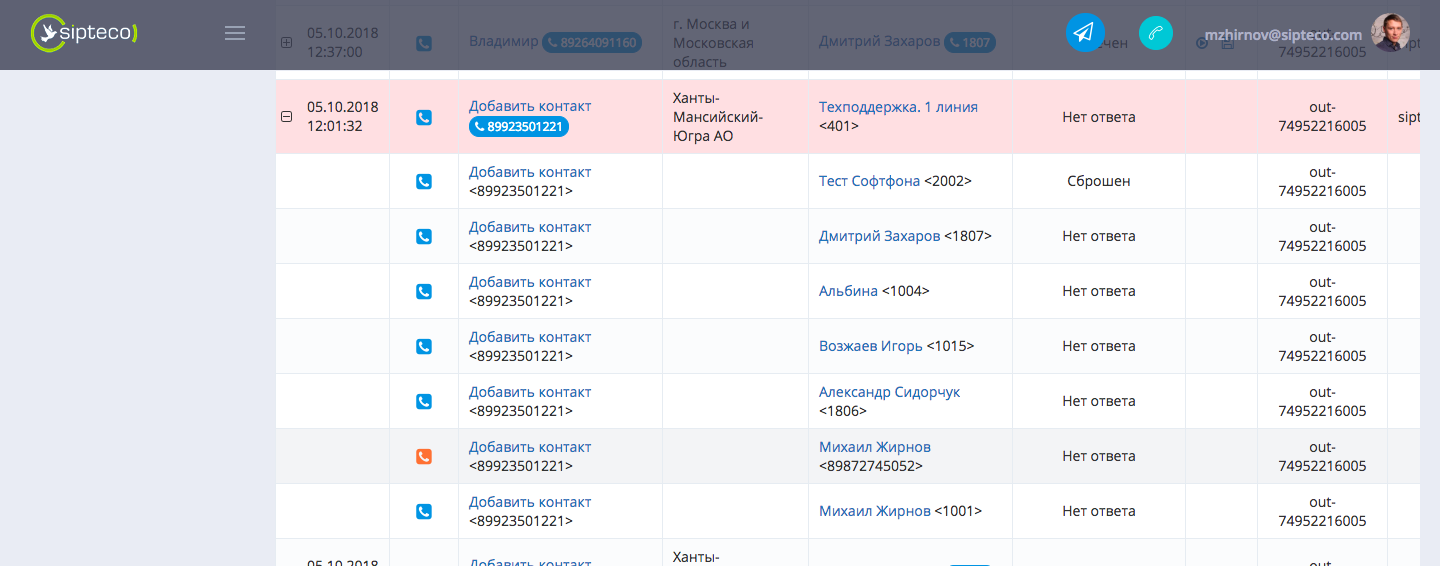 Сотрудники получают уведомления о пропущенных звонках, создаются задачи на перезвон клиенту.