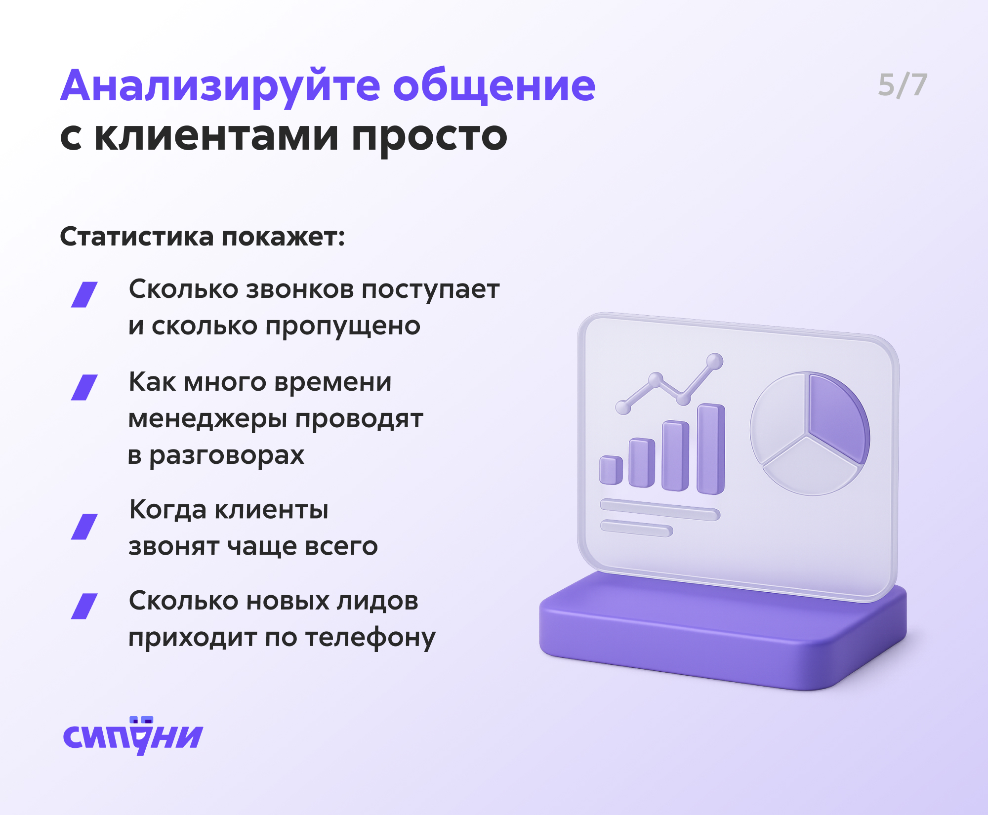 Статистика Sipuni покажет реальную картину отдела продаж. Распределять нагрузку и принимать решения о премиях и увольнениях станет проще.