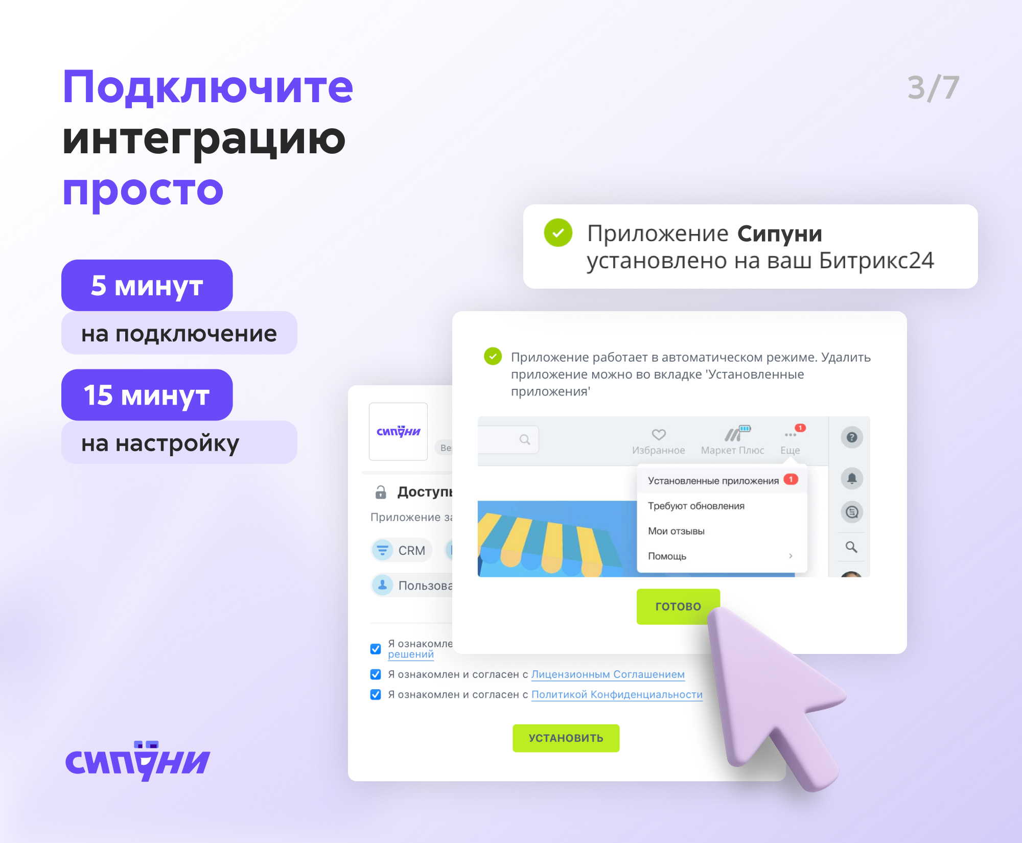 Подключите Sipuni к Битрикс24 по инструкции. Если возникнут вопросы, пишите в поддержку. Наши ребята работают круглосуточно и отвечают за 5 минут.