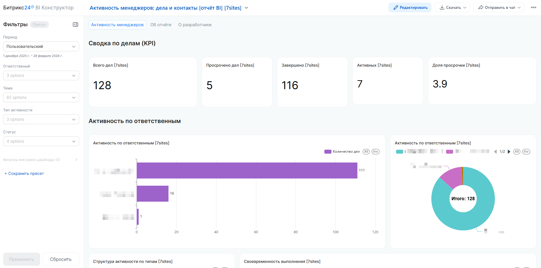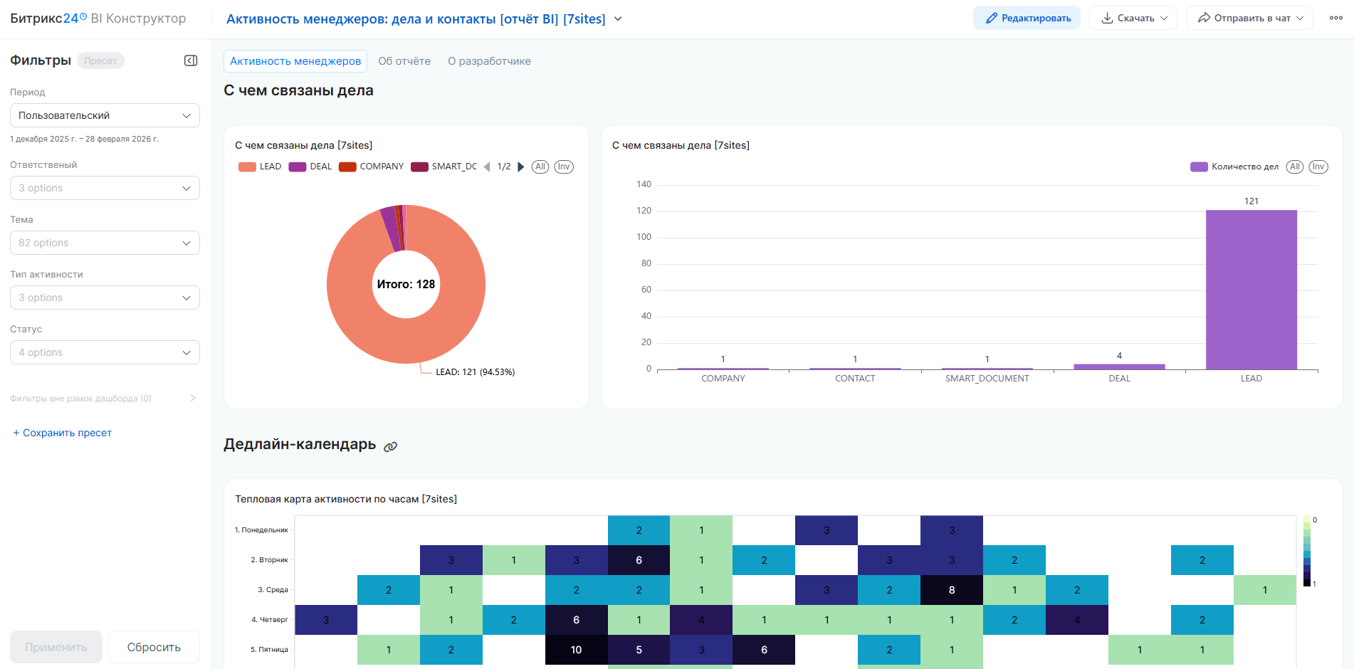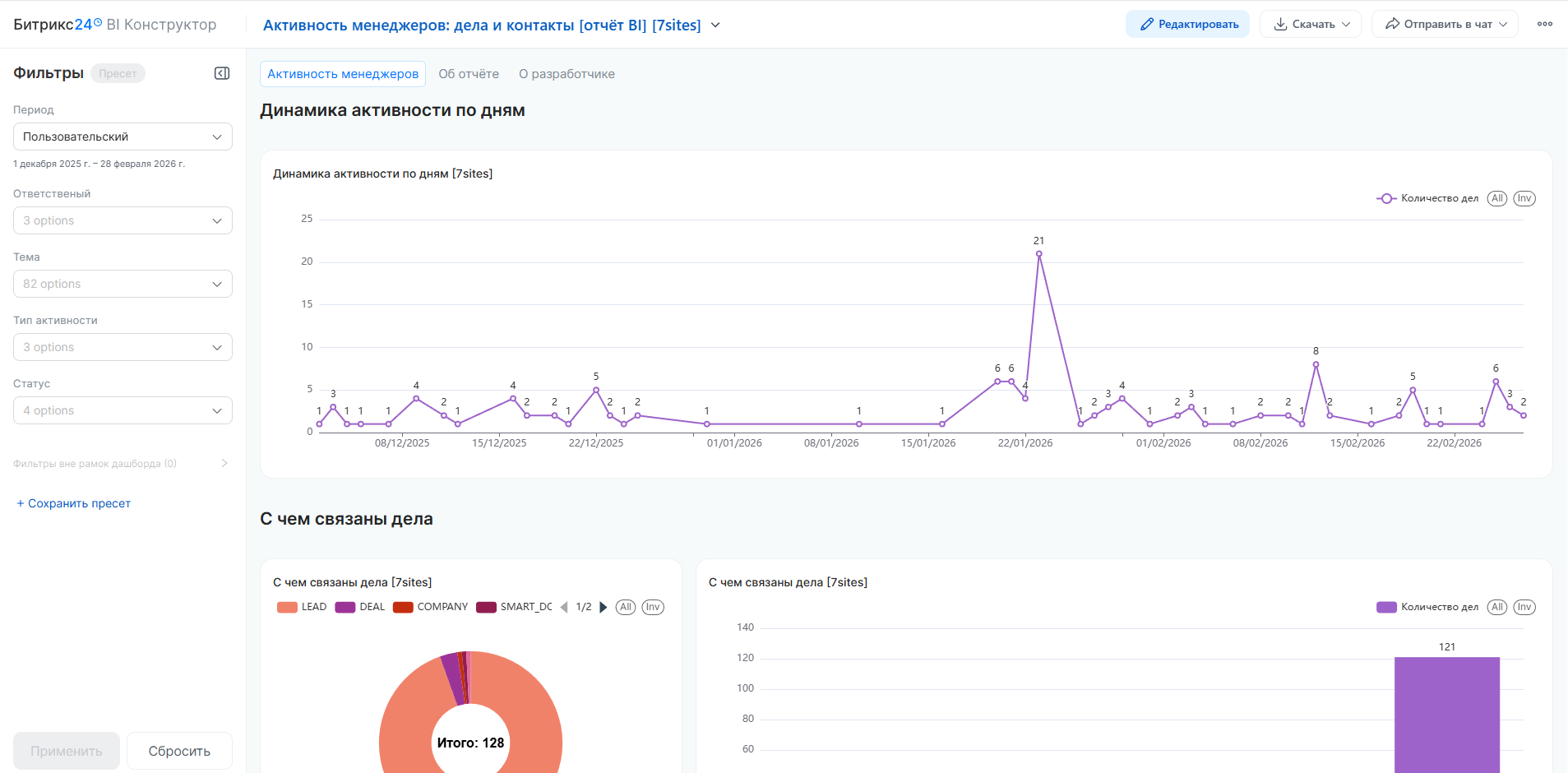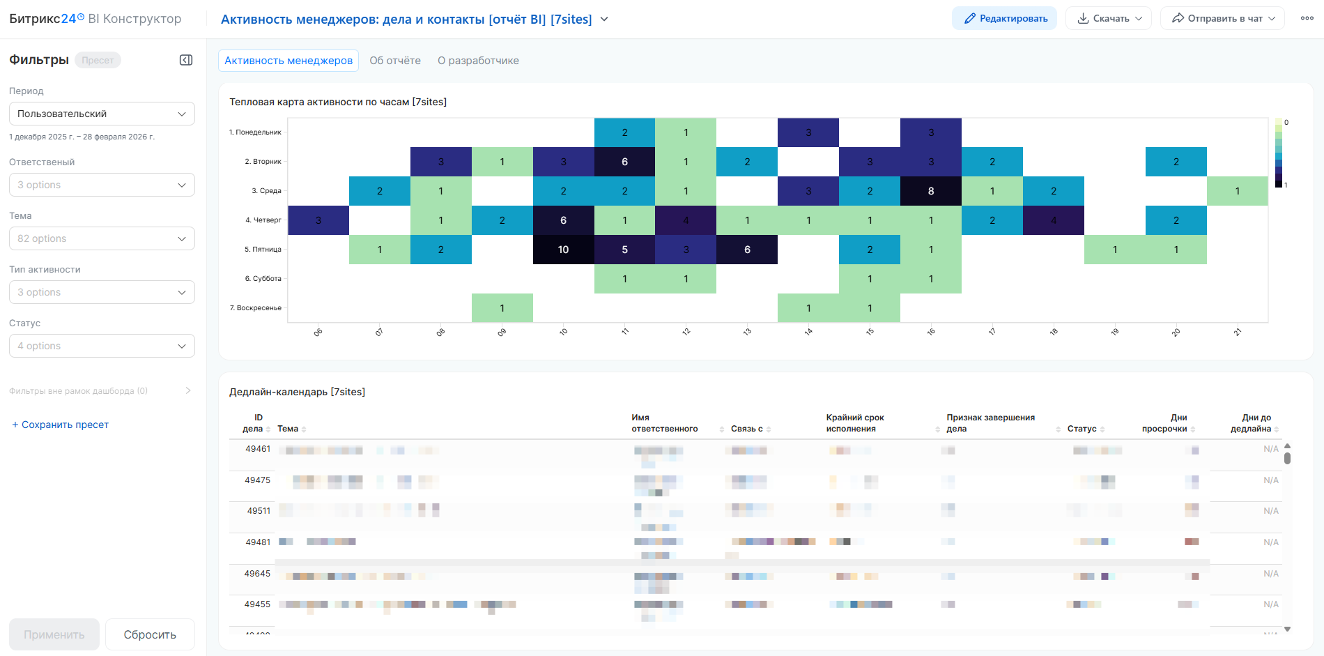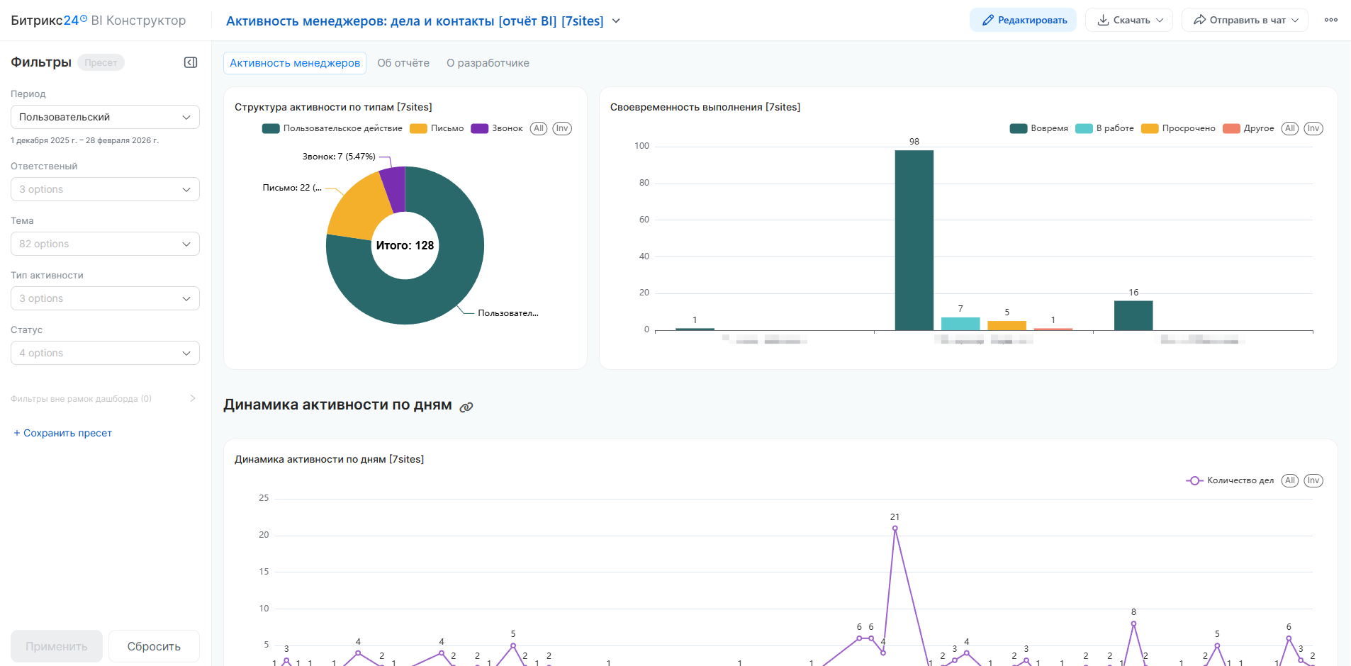 Активность менеджеров: дела и контакты [отчёт BI]