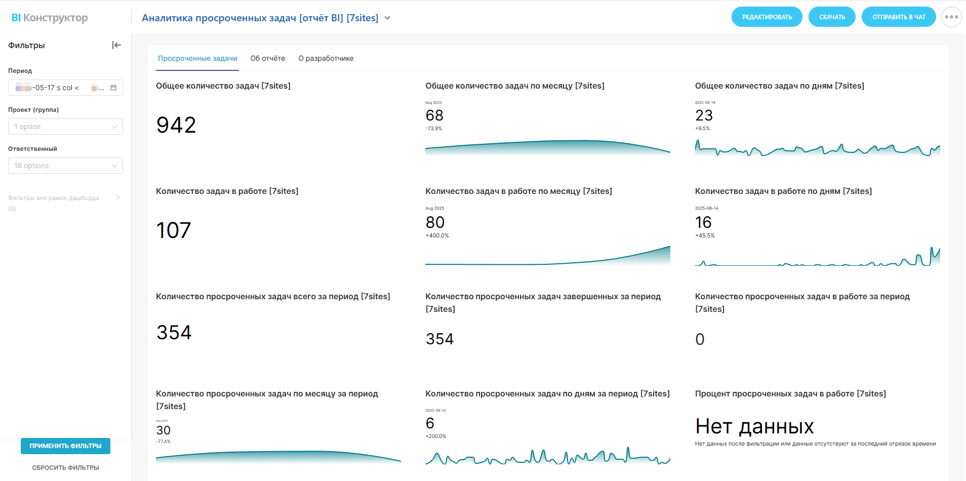 Отчёт позволяет проводить быструю аналитику по просроченным задачам