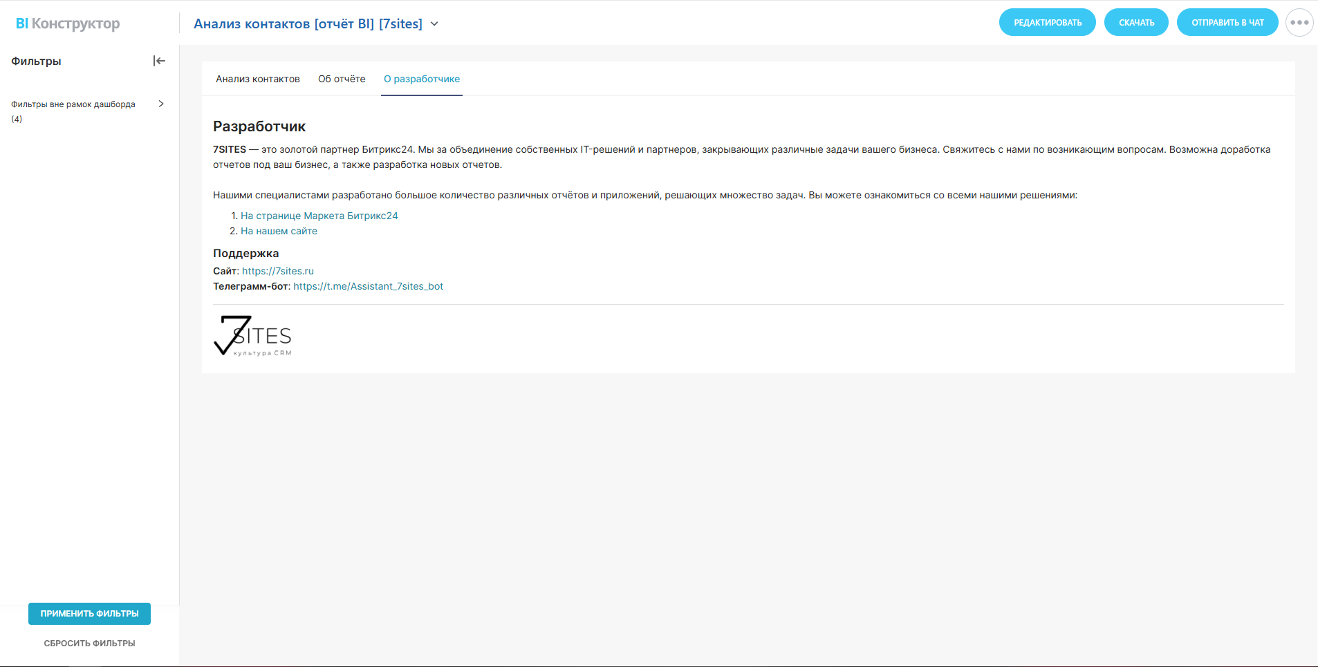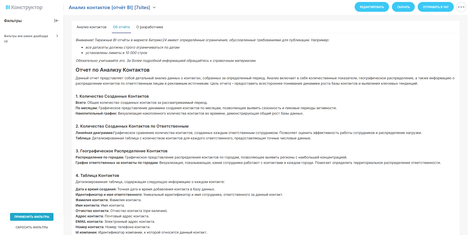 Внимание! Тиражные BI-отчёты в маркете Битрикс24 имеют определённые ограничения, обусловленные требованиями для публикации. Например: