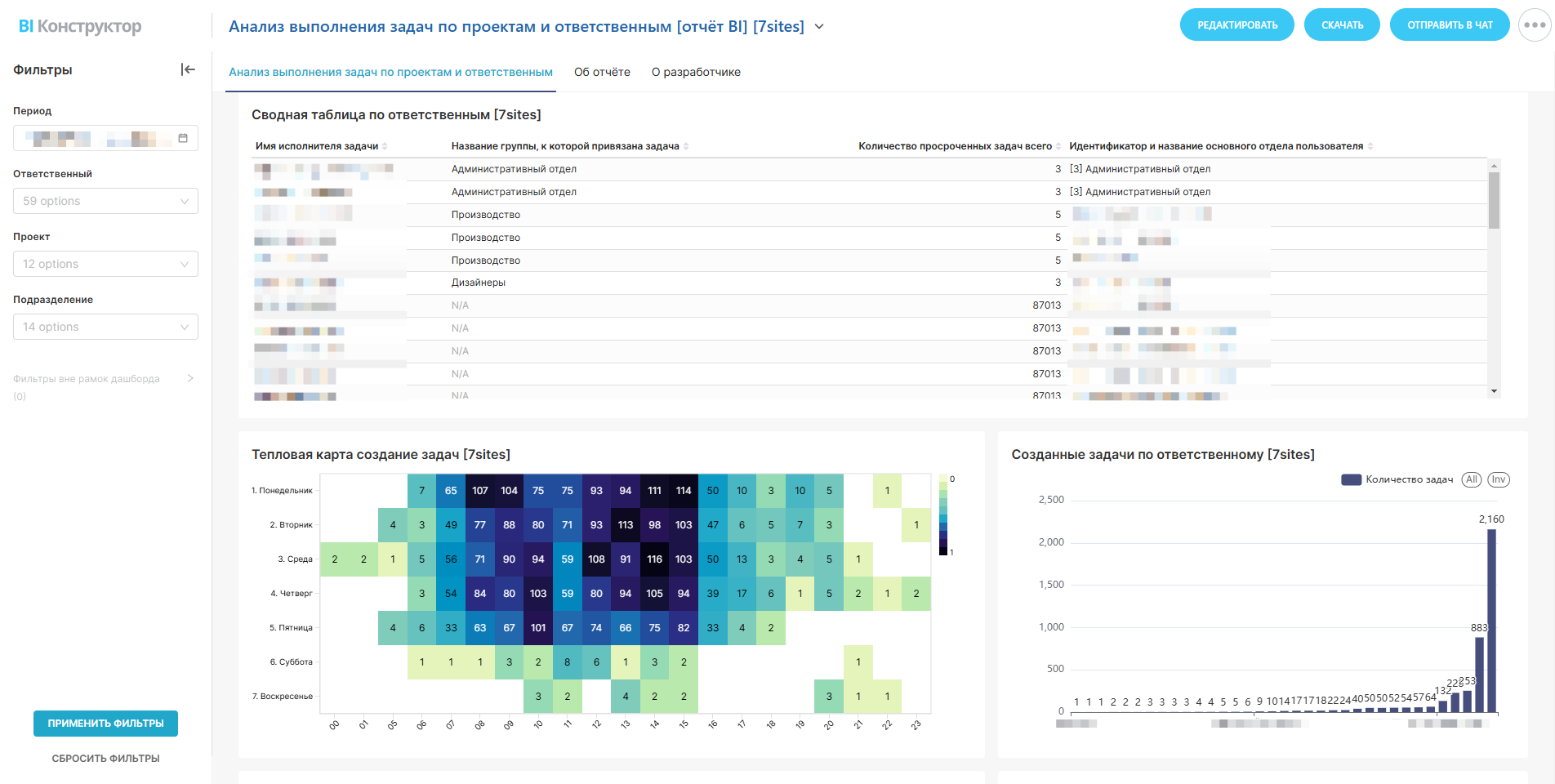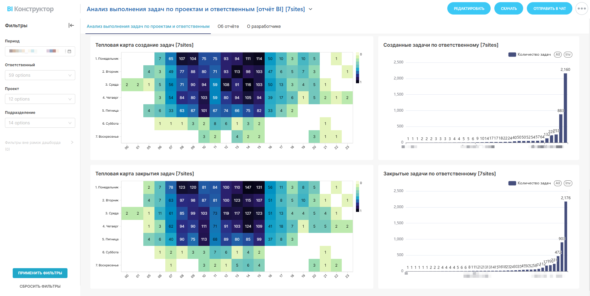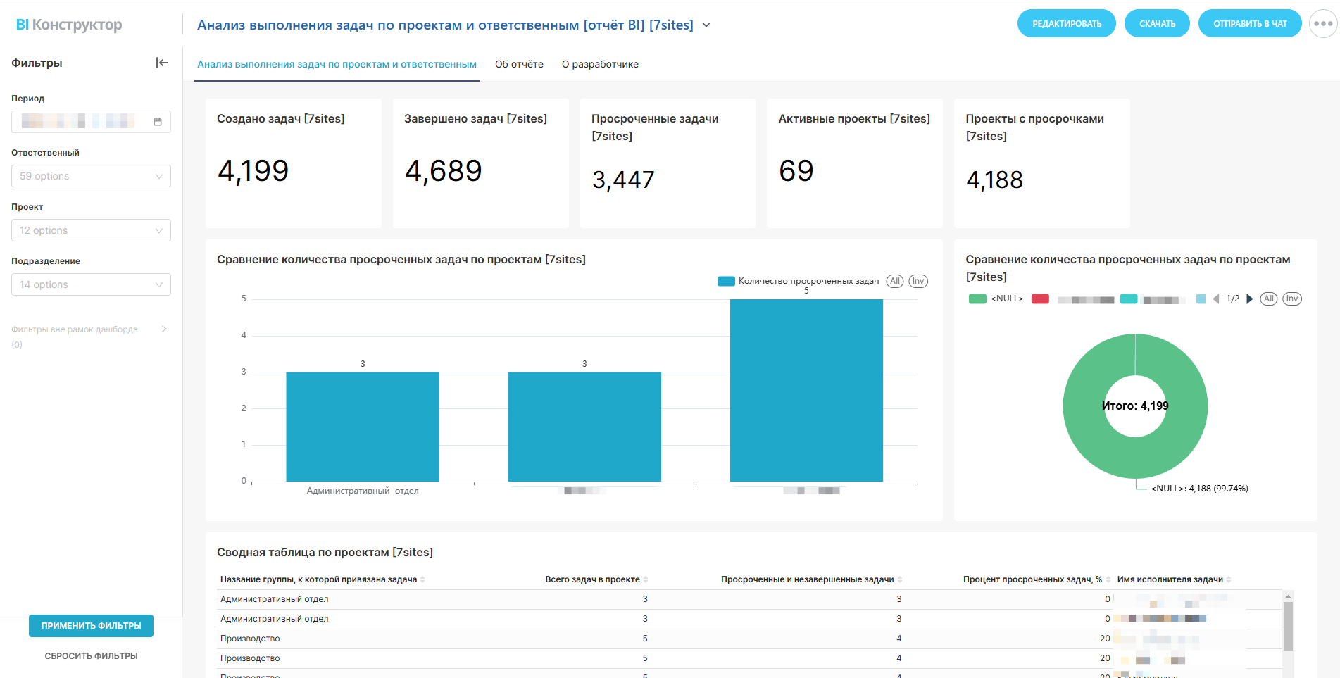 Анализ выполнения задач по проектам и ответственным [отчёт BI]
