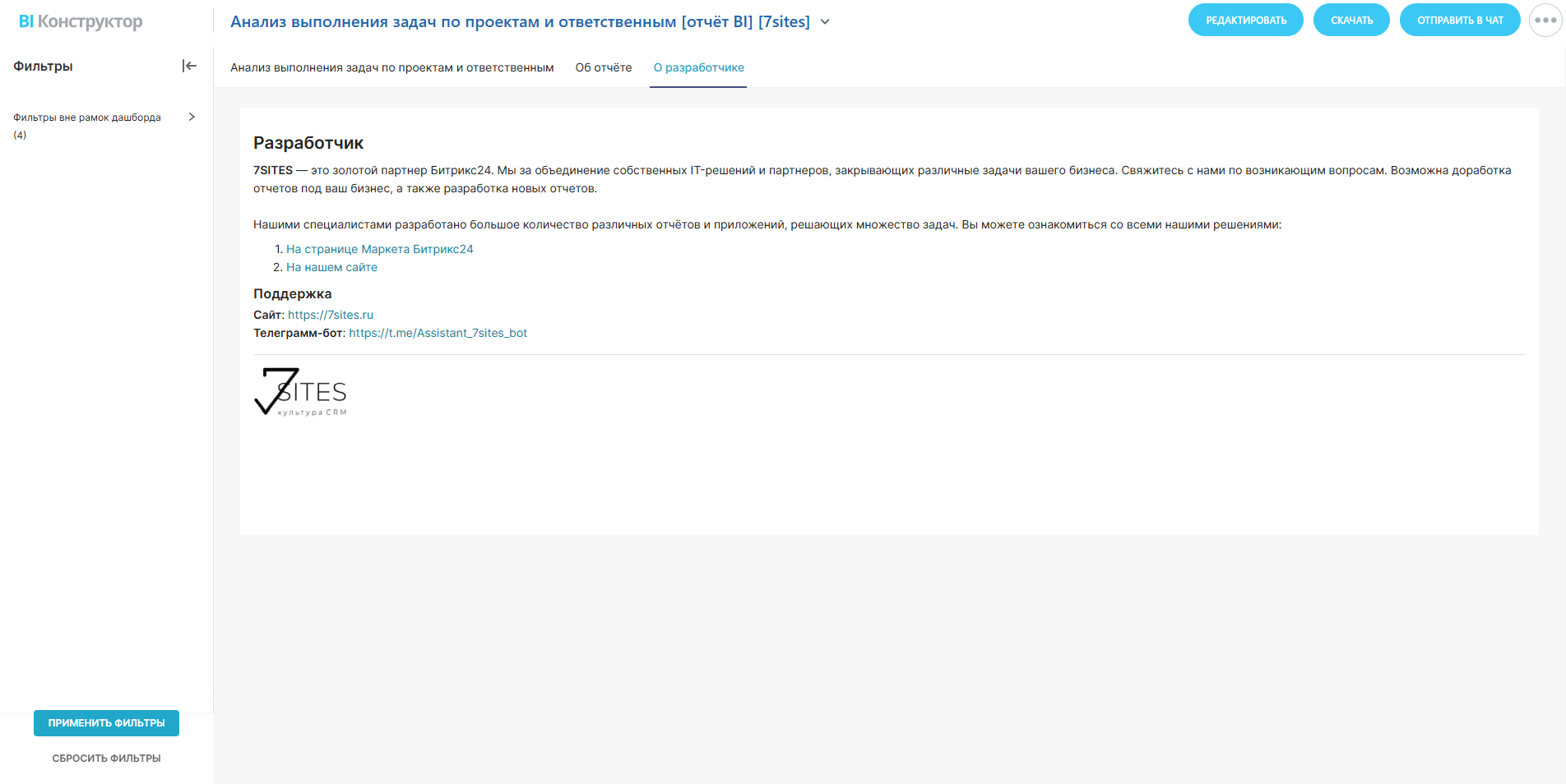 Фильтрация по ответственным: Использует поле task.RESPONSIBLE_NAME (не CREATED_BY), чтобы корректно отображать ответственных.