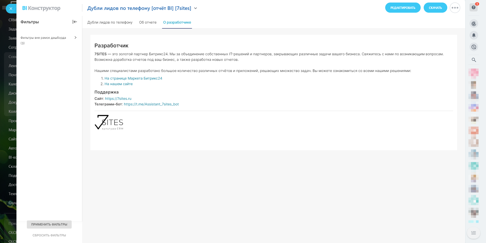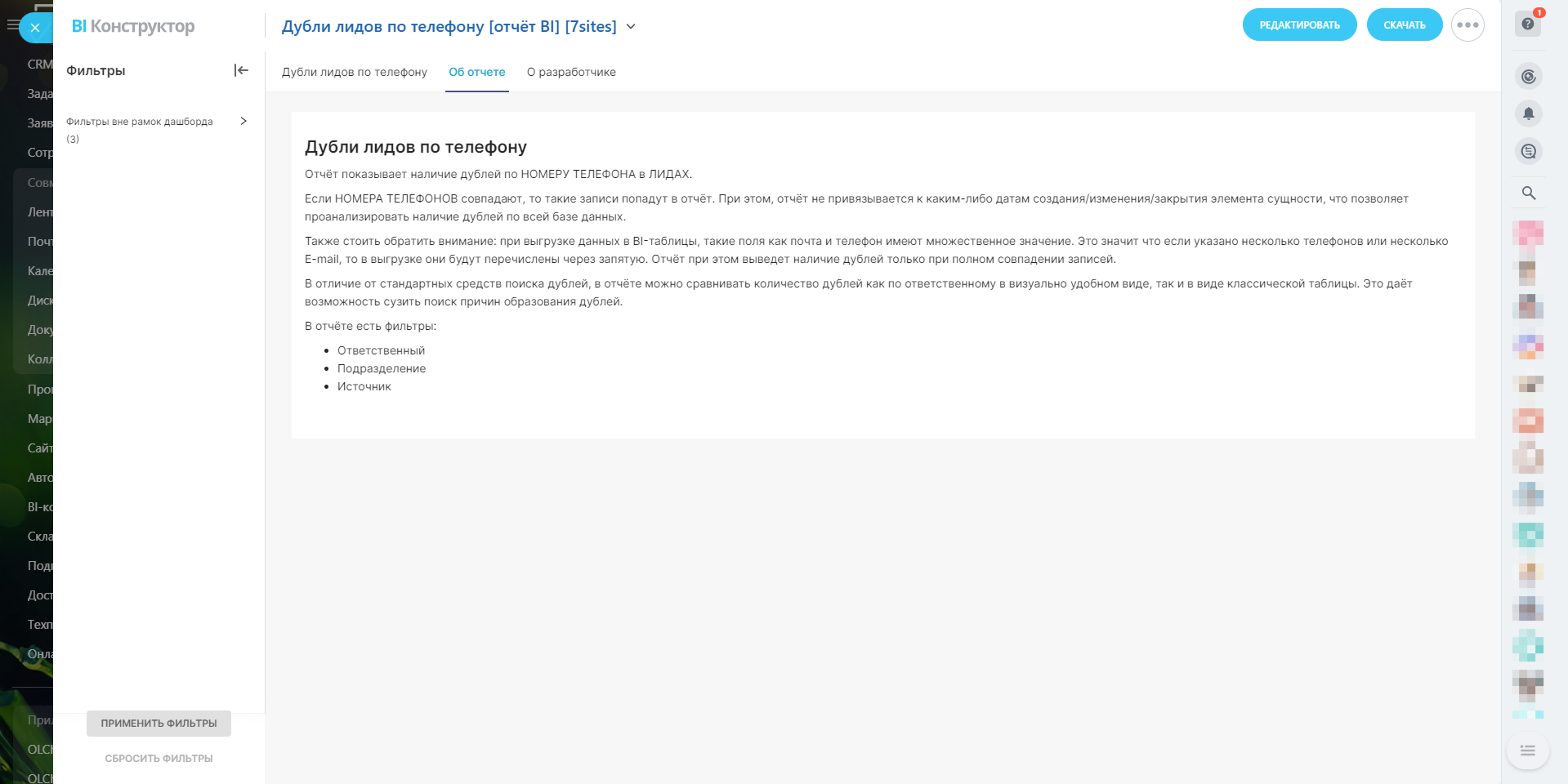 Отчёт показывает наличие дублей по НОМЕРУ ТЕЛЕФОНА в ЛИДАХ.