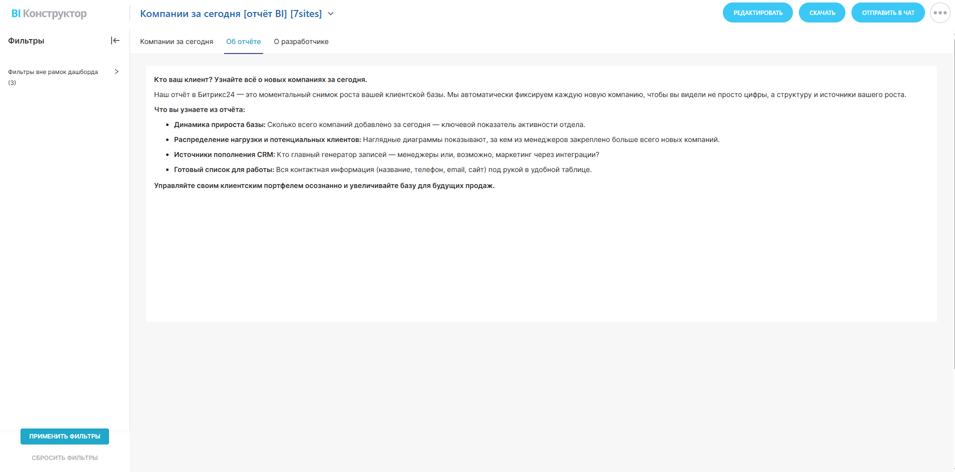 Наш отчёт в Битрикс24 — это моментальный снимок роста вашей клиентской базы. Мы автоматически фиксируем каждую новую компанию, чтобы вы видели не просто цифры, а структуру и источники вашего роста.