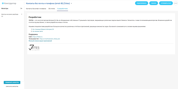 12. Таблица контактов. Финальным элементом отчёта является таблица, содержащая все созданные контакты с указанием их текущего статуса, наличия почты и телефона, а также их источников создания. Это предоставляет возможность детального анализа и оперативного реагирования на проблемы с данными.
