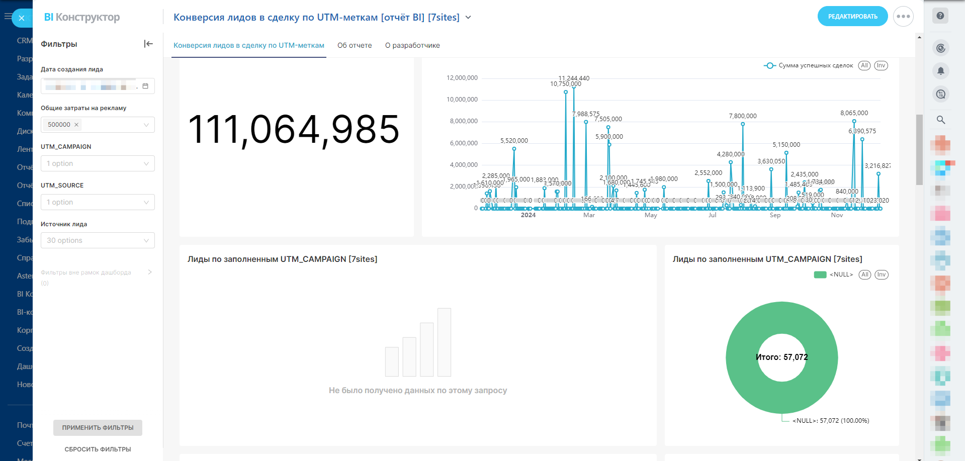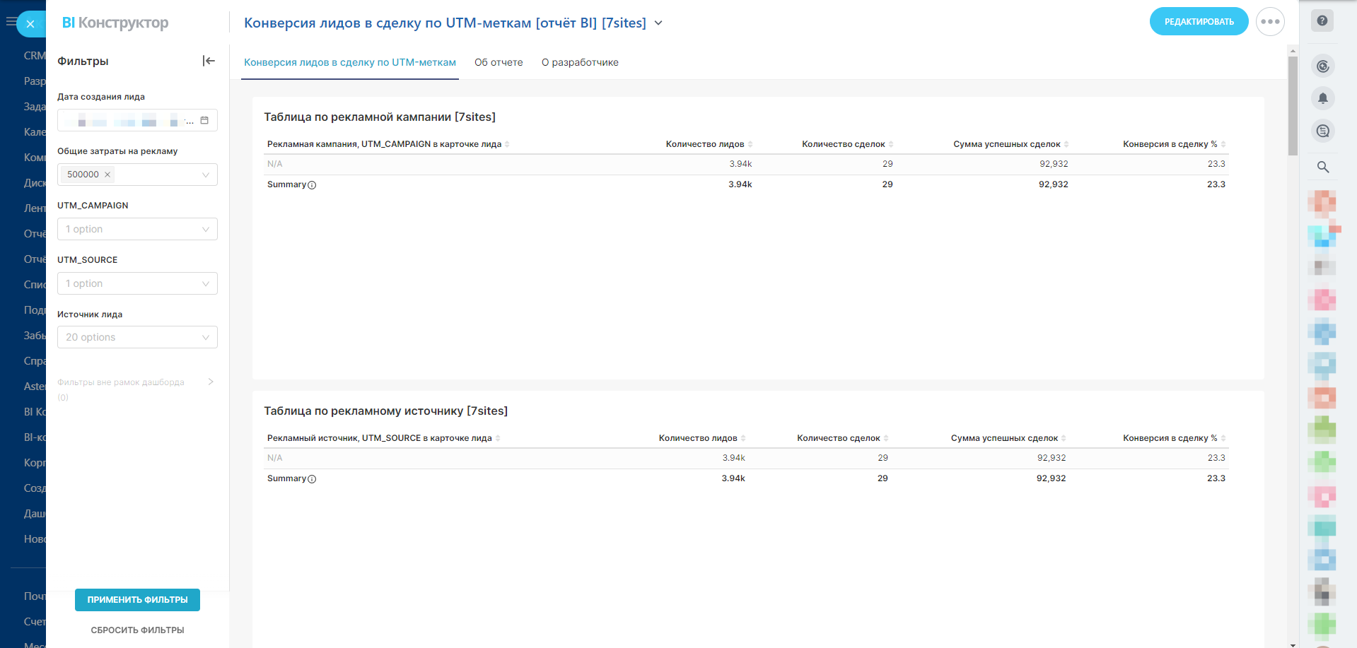 Конверсия лидов в сделку по UTM-меткам [отчёт BI]