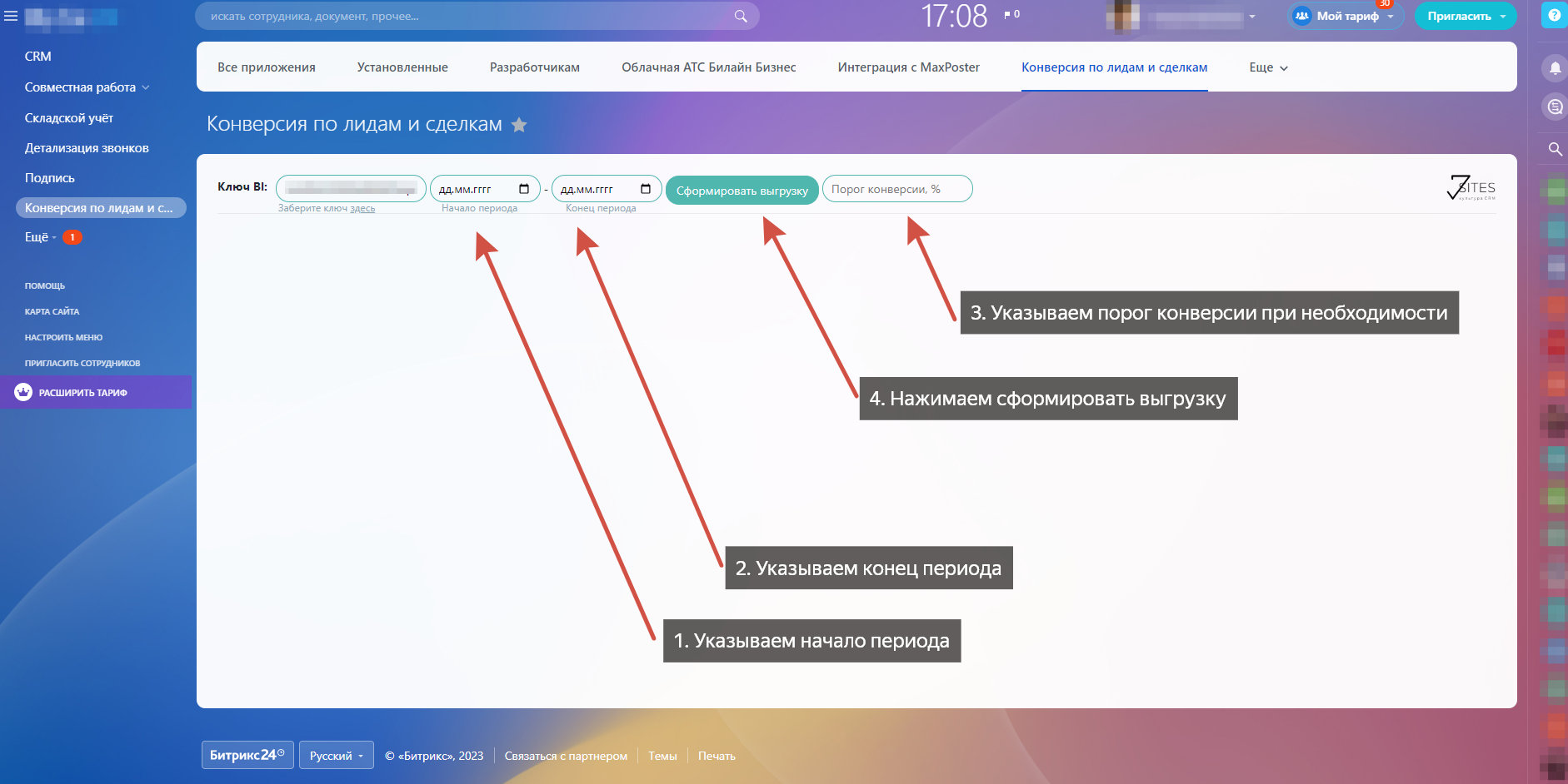 Внимание! Приложение работает крайне быстро за счёт использования BI-коннектора Битрикс24.