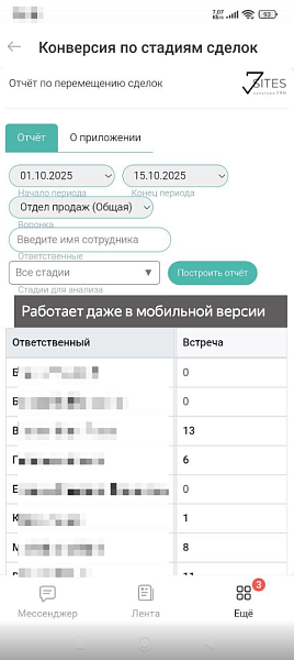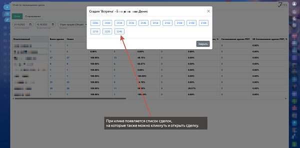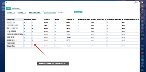 Отчёт представляет собой инструмент для анализа эффективности перемещения сделок по стадиям воронки продаж.