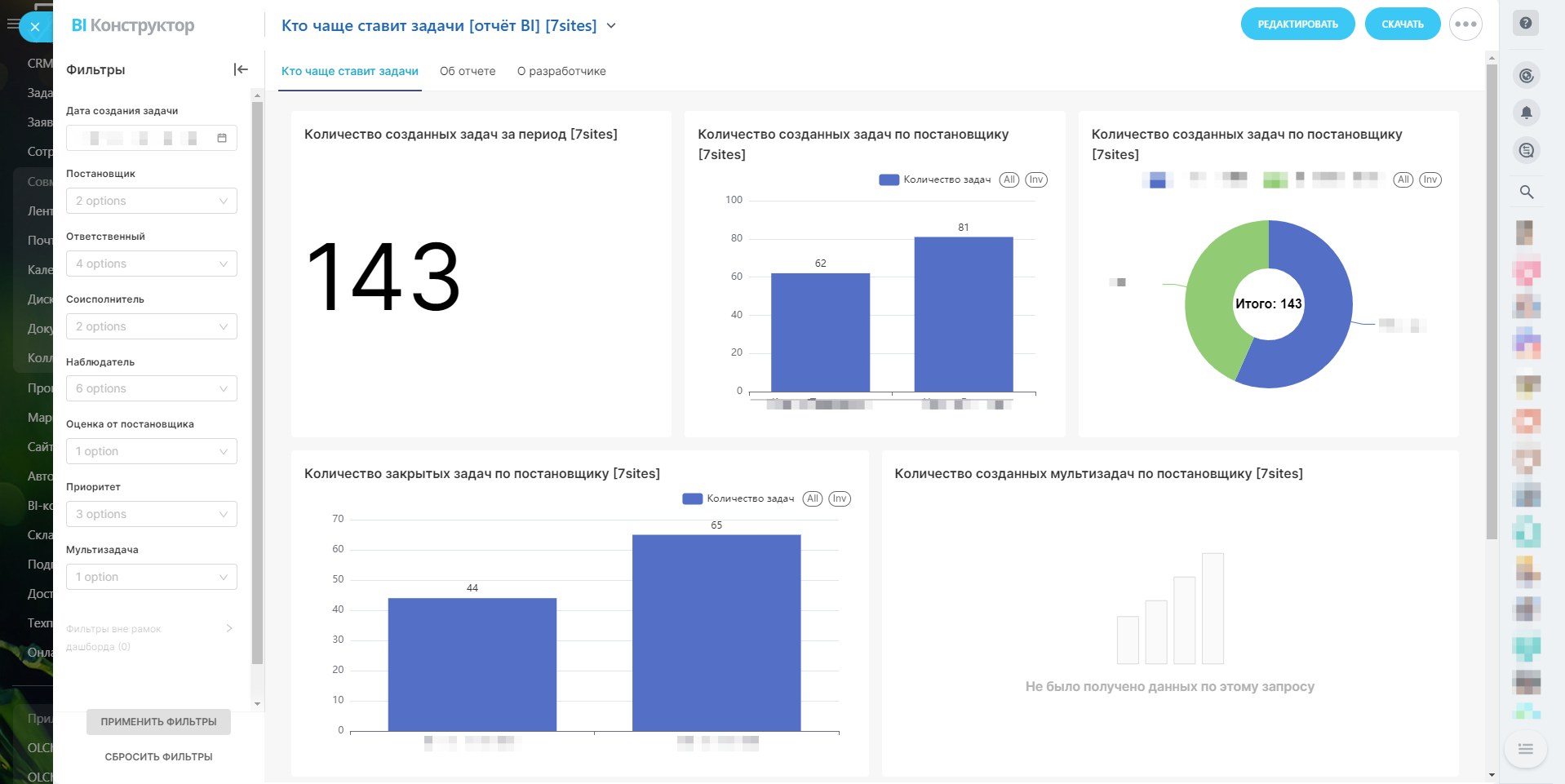 Задачи не только выполняют, но и кто-то эти задачи ставит. Давайте посмотрим кто это любит делать чаще, а кто реже благодаря следующим показателям: